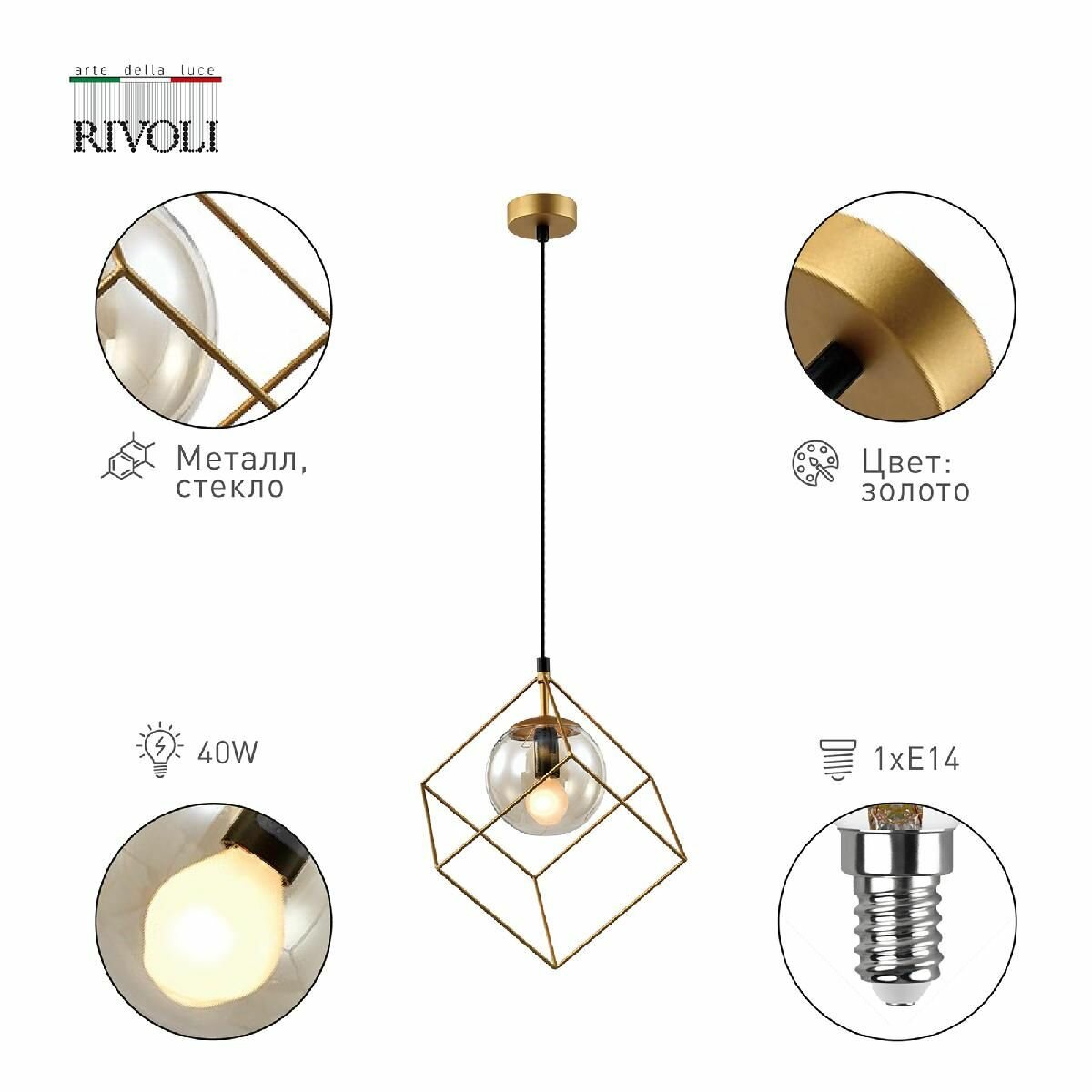Подвесной светильник Rivoli Moon 5145-310 Б0055495 бренда Rivoli из Италии коллекции Moon в стиле Лофт. Одна из зон рекомендованных к размещению (необязательно) В кафе и рестораны. Место расположения - На потолок. Материал плафона/абажура - Стекло. Цвет плафона/абажура - Прозрачный. Форма плафона - Шар. Направление абажуров/плафонов: Вниз. Количество плафонов/абажуров - 1. Материал арматуры - Металл. Цвет арматуры - Золото. Подходит для натяжных потолков: Да. Тип крепления: Монтажная пластина. Тип подключаемых ламп: Накаливания цоколя E14. Площадь освещения - 3. Мощность лампы, W: 40. Общая мощность, W: 40. Количество ламп - 1. Напряжение - 220. Степень защиты (IP): 20. Высота, мм - 900. Ширина, мм - 250. Длина, мм - 250. Длина подвеса, мм - 650