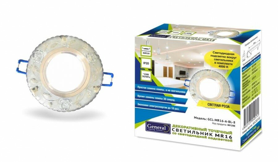 Встраиваемый светильник с LED подсветкой General GCL-MR16-A-BL-8 (661248)