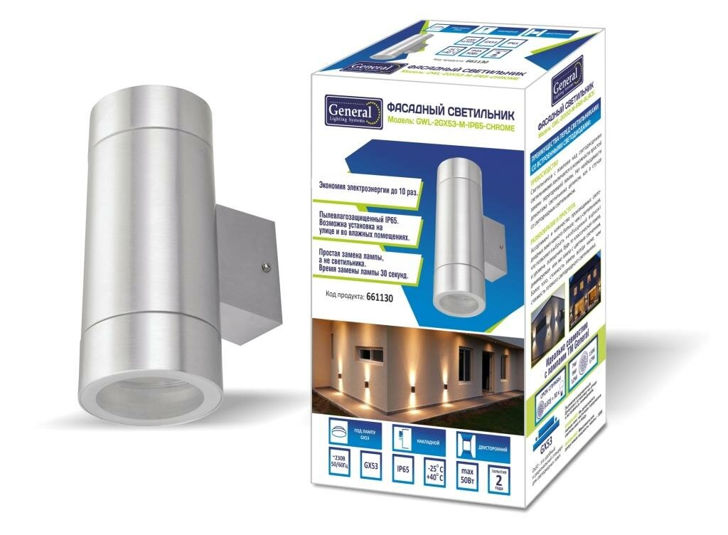 Сервис сравнения цен СкидкаГИД предлагает сравнить цены на товар «Уличный настенный светильник General GWL-2GX53-M-IP65 (661130) (размер: 90x205x140)»