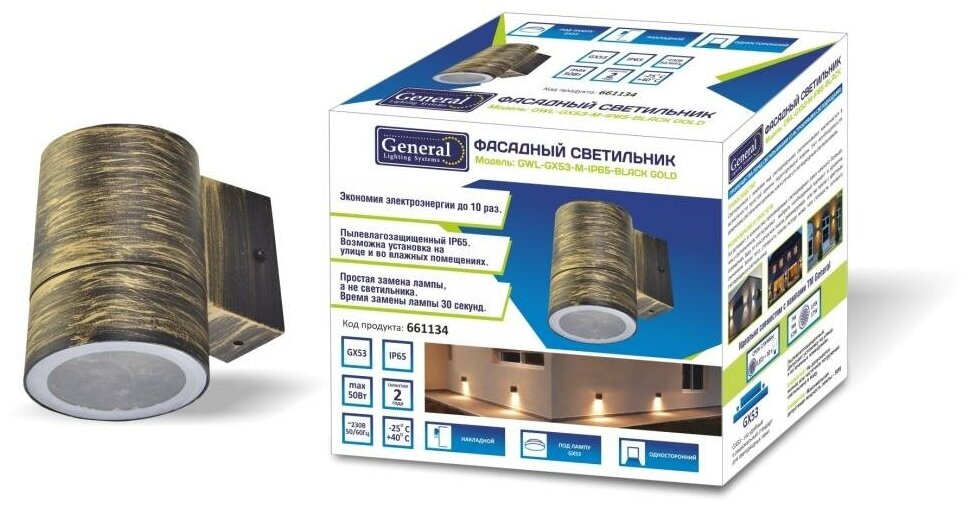 Уличный настенный светильник General GWL-GX53-M-IP65 (661134) (размер: 80x80x68)