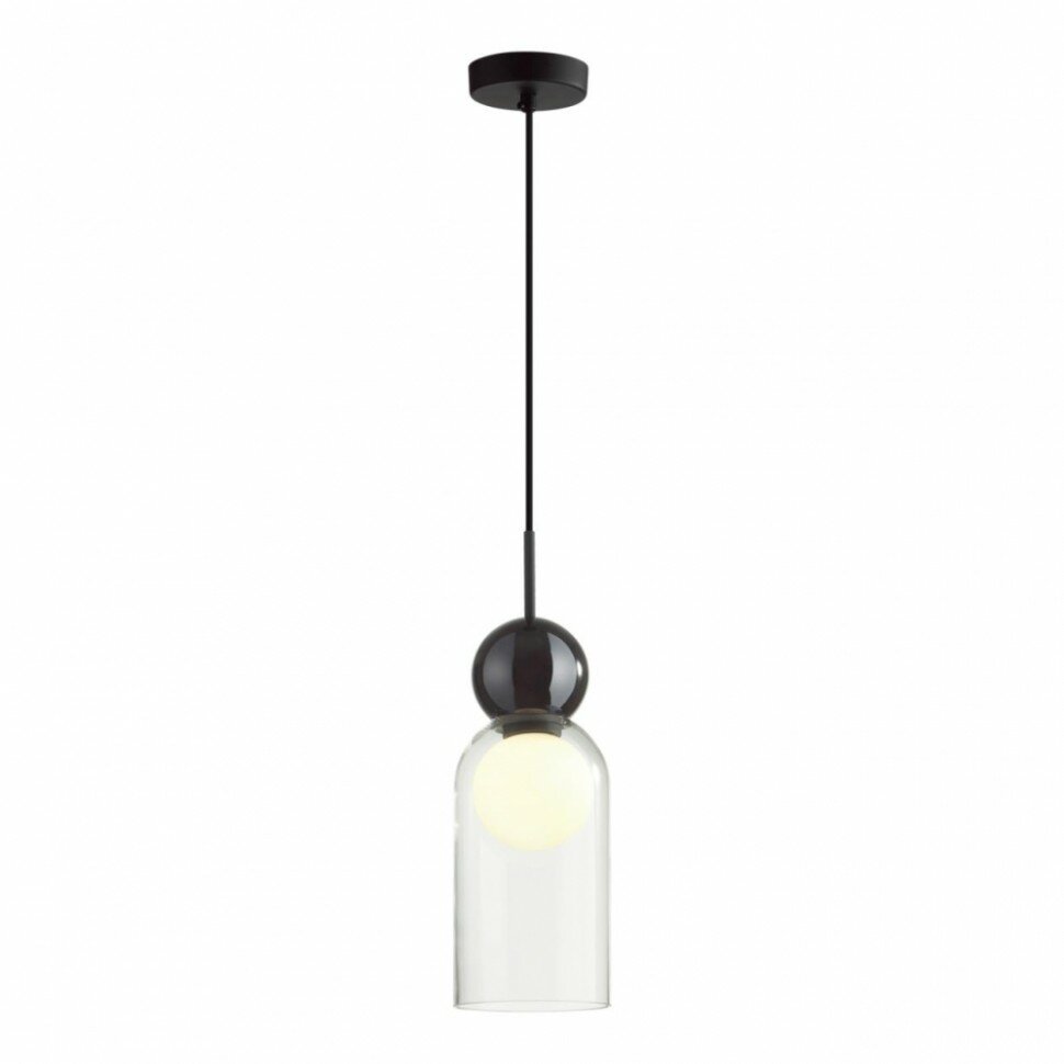 Blacky — современная линия подвесов различных по форме, которые удачно сочетать в разноуровневых композициях. Округлые формы плафонов, которые сейчас в моде, и дополнительный матовый белый рассеиватель в виде шара внутри, который скрывает яркую нить свечения лампочки и делает источник света для прозрачного плафона равномерным и мягким. Декоративный элемент в виде черного стеклянного шара вносит современный акцент в общий дизайн светильника.