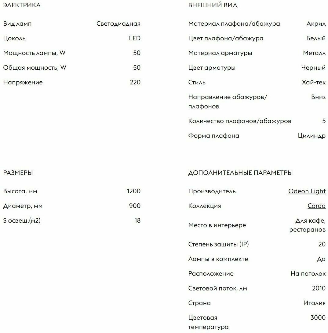 ✅Подвесной светильник. Подвесная люстра Odeon Light Corda 4397/55L для кафе, ресторанов, стиль Хай-тек, цвет Черный ✅ Стильная подвесная люстра Odeon Light 4397/55L 306245 добавит свежести и практичности Вашему дому! Люстра выполнена из высококачественных материалов и комплектующих. Данная модель светильника: 4397/55L 306245 сочетает в себе оригинальный дизайн, высокую функциональность и надежность. Внешний вид люстры отличается эффектностью и аккуратным исполнением каждого элемента. Утонченный дизайн люстры 4397/55L 306245 Odeon Light для дома делает ее предметом декора и это уж не просто какая-то "люстра в комнату или люстра в спальню", это самостоятельный дизайнерский акцент. Изящная конструкция оформлена в тенденциях классического стиля и способна стать органичным элементом практически любого интерьера, поэтому подвесной светильник используют в современном стиле хай тек, прованс, лофт и в стиле модерн, современных и классический, он станет замечательным украшением для Вашего дома. ✅ Подвесные люстры Odeon Light идеальны для освещения просторных гостиниц и спален, также подойдут для мужского кабинета или студии, они обеспечивают качественное базовое освещение и выигрышно смотрятся. Люстры светильники предназначены не только для общего освещения жилых комнат, но и является функциональным предметом и может стать акцентом в интерьере ресторанов, загородного дома. ✅ Все подвесные светильники Odeon Light подходят для натяжных и подвесных потолков. Такая интерьерная люстра послужит отличным подарком близким родственникам и друзьям на юбилей, день рождение, новоселье на любой другой праздник и просто так. ✅ Высокое качество и привлекательный дизайн делают светильники компании "Дома Светло" отличной покупкой, которая дополнит Ваш интерьер светом, теплом и уютом и прослужит долгие годы без изменения декоративных и технических свойств. В нашем магазине мы готовы предложить Вам огромный выбор самых разнообразных современных и качественных осветительных приборов по стилю, формам и цветам.✅ Заказывайте подвесные светильники Odeon Light для вашей комнаты, спальни, гостиной, коридора, прихожей, в холл, в кабинет, в офис, в детскую в нашем магазине ✅ дома СВЕТЛО✅ на озон и получайте удовольствие от покупки + приятные бонусы и скидки.