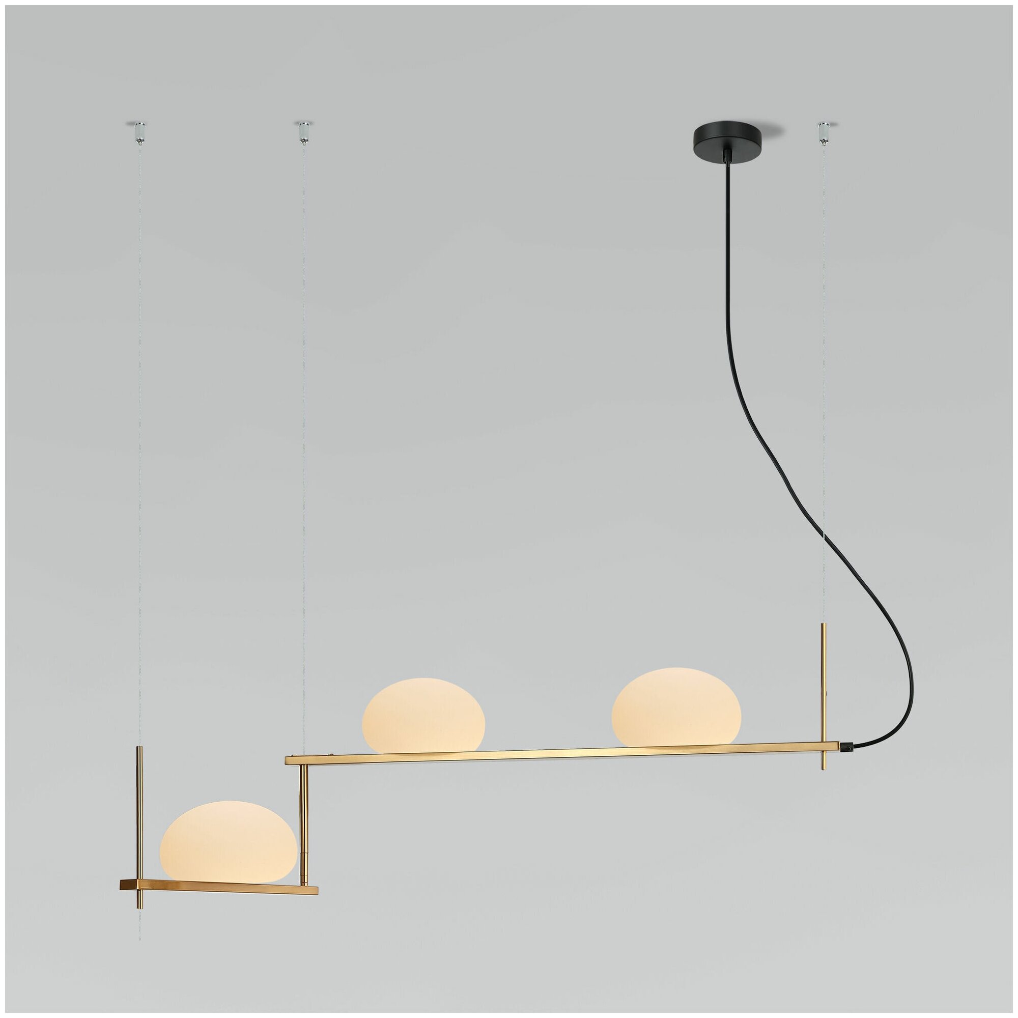 Подвесной светильник 70145/3 в цвете латунь предназначен для создания дополнительного освещения и акцентной подсветки в современных интерьерах. Светильник со сменными лампами G9 создаст качественное освещение на площади 4 м кв. и подсветит рабочие зоны на кухне, в зале, в кабинете и в других местах.Трехрожковый светильник со стеклянными плафонами оснащен системой регулировки высоты подвеса, позволяющей размещать изделие на разных уровнях, уменьшая или увеличивая угол рассеивания светового потока. Накладной светильник легко устанавливается на натяжных потолках при помощи монтажной планки.