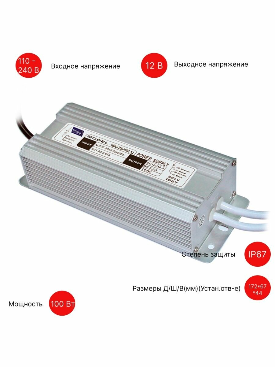 Драйвер для светодиодной ленты 12V 100W IP67 General GDLI-100-IP67-12 (513400)