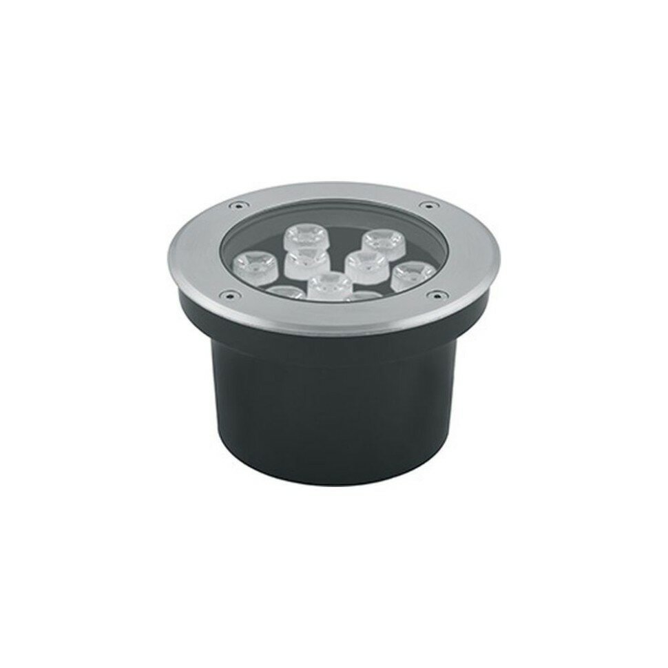 Тротуарный светильник светодиодный, встраиваемый (ДВУ) FERON SP2803, 10W, 3000К (теплый белый), AC12V/50Гц, 800Lm, IP67, угол рассеивания 15°, 9LED*SMD3030, класс защиты 3, цвет металлик, корпус алюминий, сталь, 160*160*90мм, D внутр. 110мм