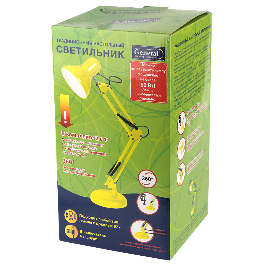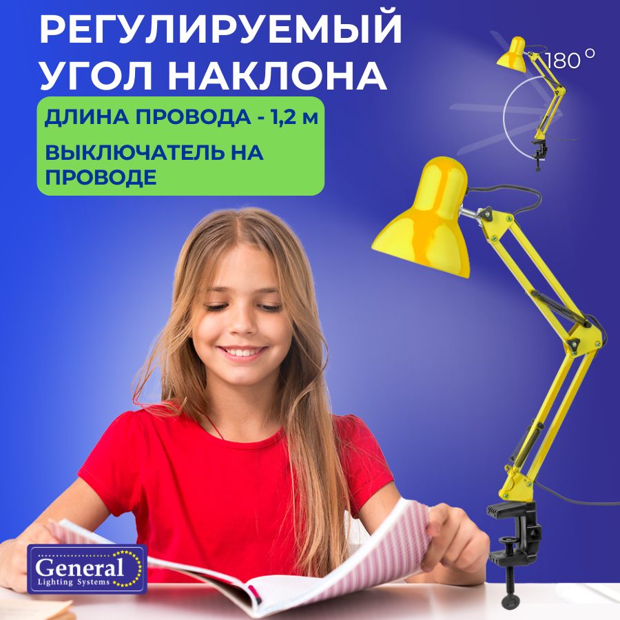 Настольная лампа на струбцине GTL-041 желтый 800141 General