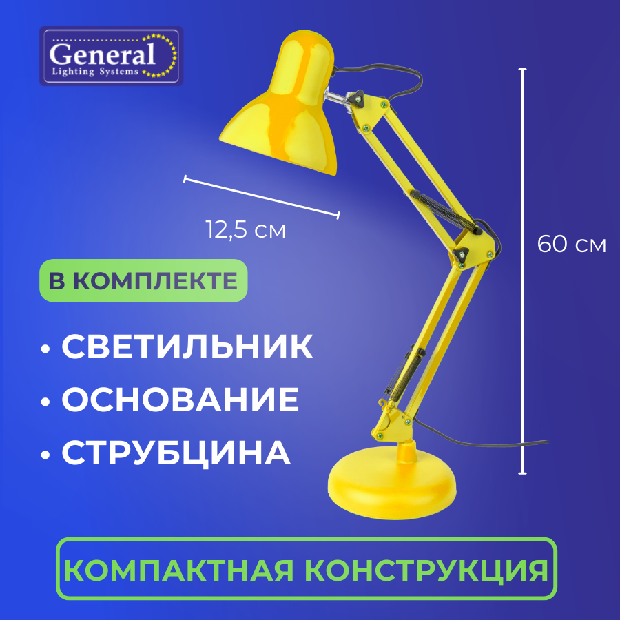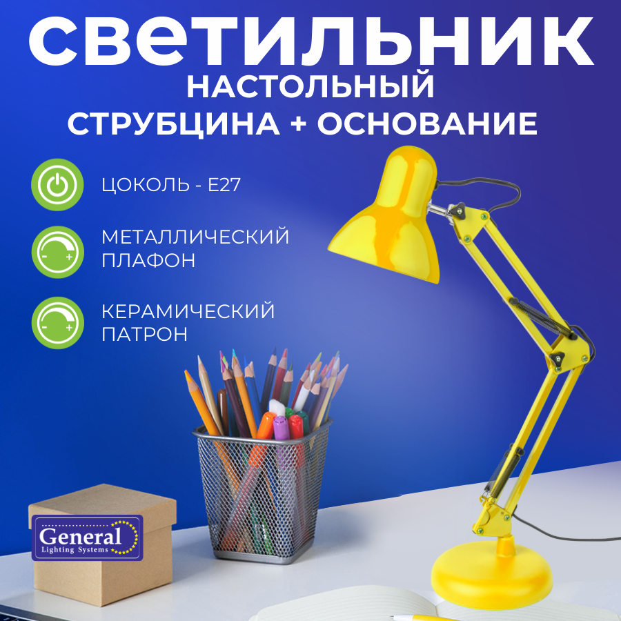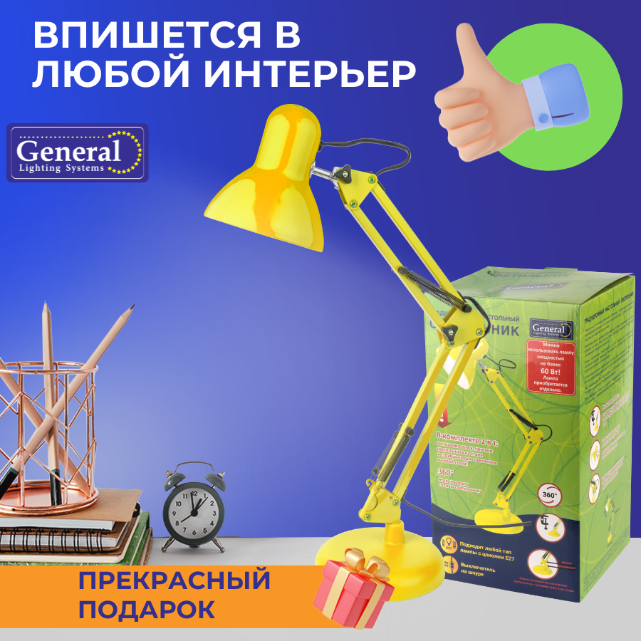 На сегодняшний день товар «Настольная лампа на струбцине GTL-041 желтый 800141 General» можно купить с кешбеком в 2 магазинах: Santehnika-room, Яндекс.Маркет