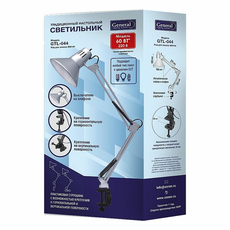 Сервис сравнения цен СкидкаГИД предлагает сравнить цены на товар «Настольная лампа на струбцине General GTL-044 серебристый 800144»