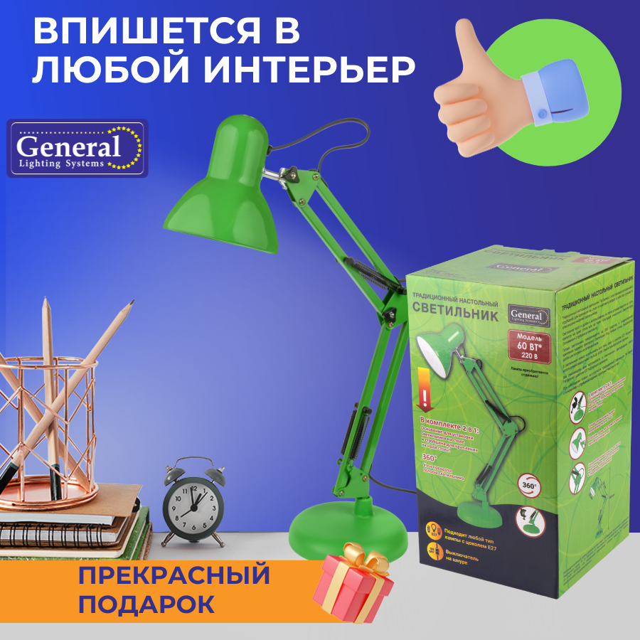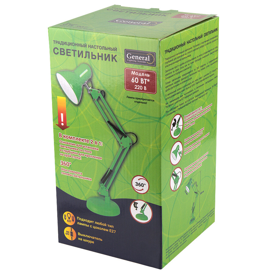 Настольная лампа на струбцине GTL-037 зеленый 800137 General