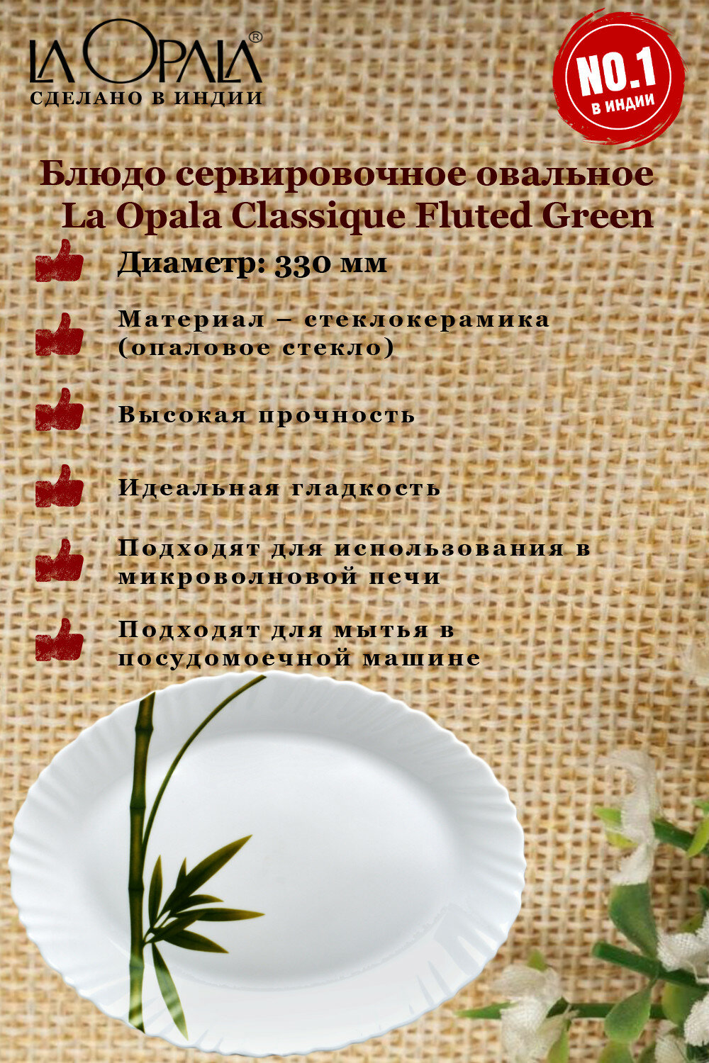 Сервис сравнения цен СкидкаГИД предлагает сравнить цены на товар «Блюдо сервировочное овальное La Opala Classique Fluted Green 330 мм 1 шт (LA5523319)»