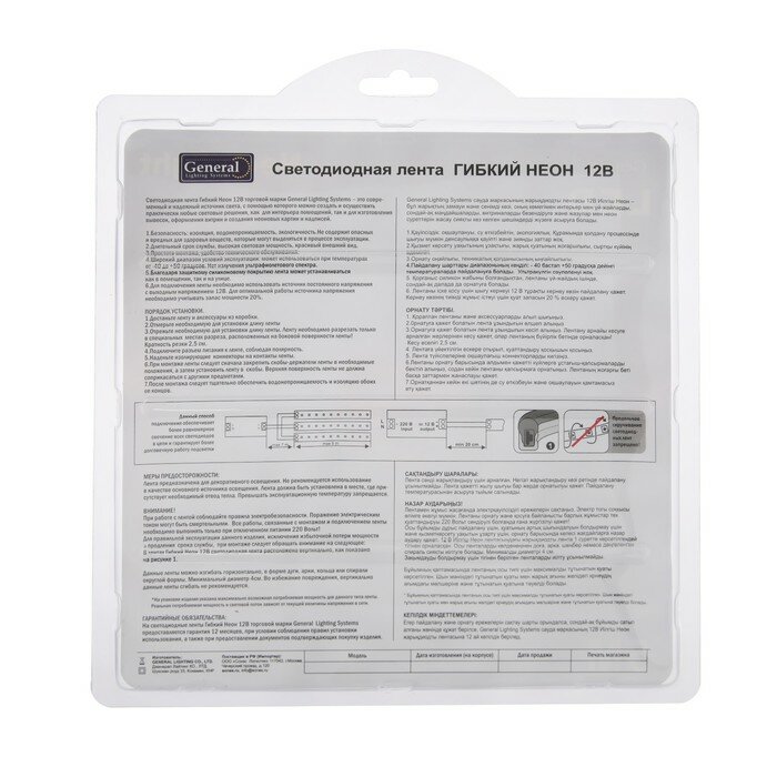 На сегодняшний день товар «5м. Неоновая лента холодного цвета 6500K 2835 96W 12V 120LED/m IP67 General GLS-2835-120-9.6-12-NL-IP67-6 (510411)» можно купить с кешбеком в 1 магазине: Яндекс.Маркет