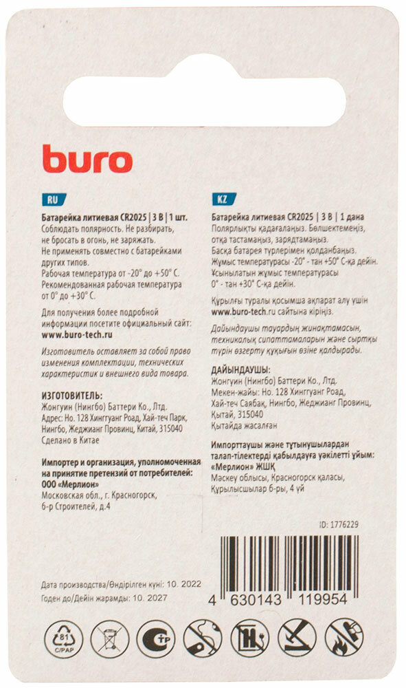 На сегодняшний день товар «Батарея Buro Lithium CR2025 (1шт) блистер Lithium CR2025 (1776229)» можно купить с кешбеком в 1 магазине: Яндекс.Маркет