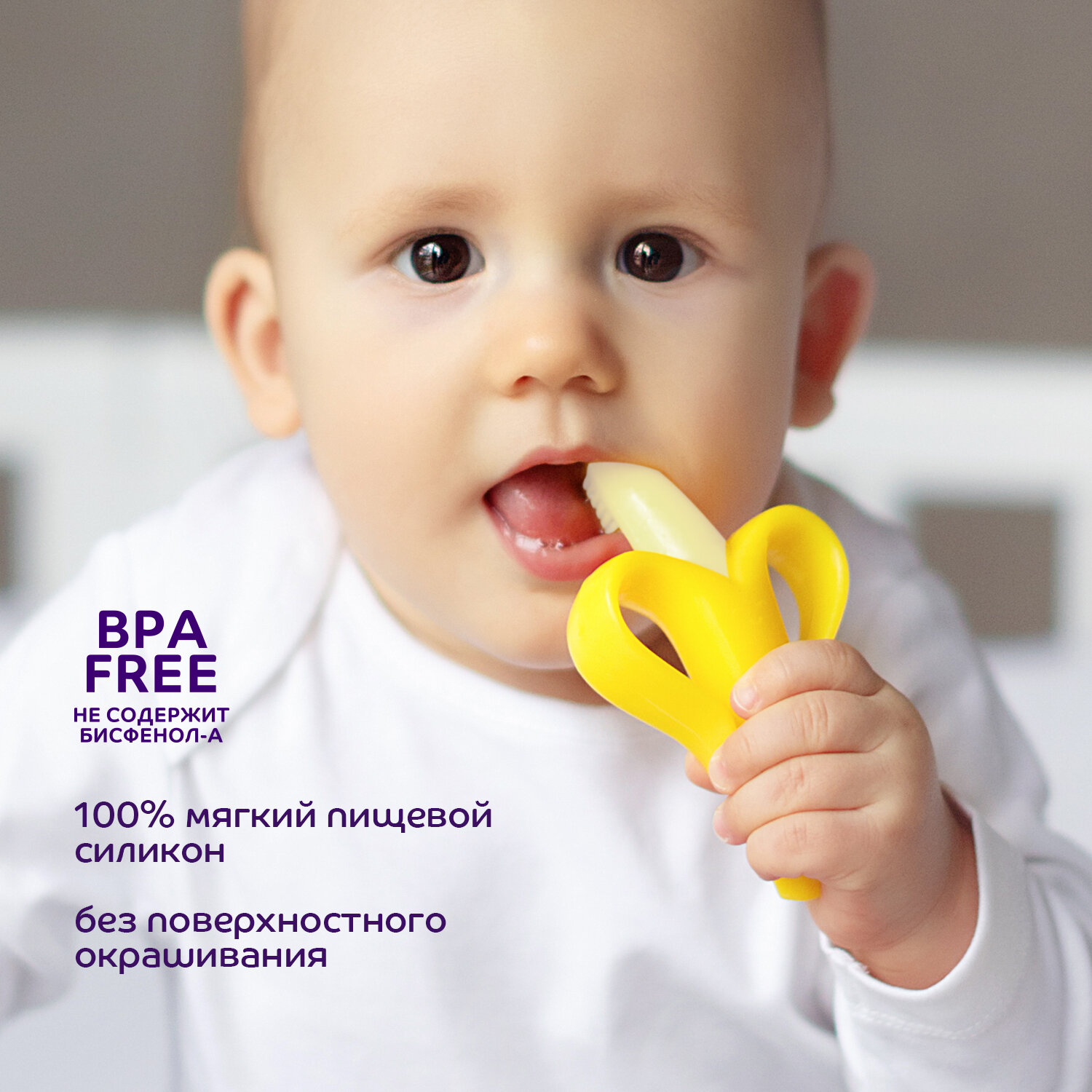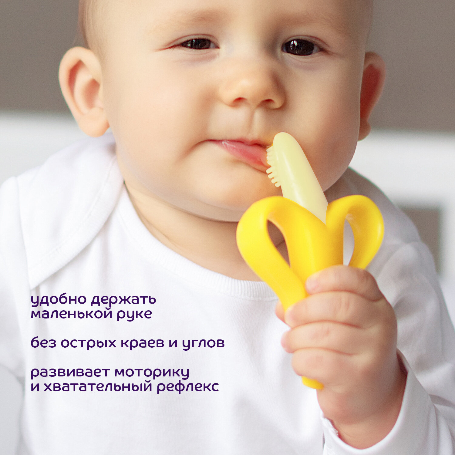 Форма прорезывателя разработана специально для удобного захвата детскими ручками. Яркий цвет "а" сосредоточит интерес малыша.Прорезыватель помогает справиться с неприятными ощущениями во время прорезывания зубов. Для усиления успокаивающего эффекта прорезыватель можно положить в холодильник на 10-15 минут перед тем, как давать его ребенку.