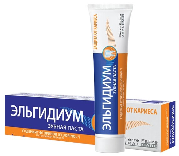 Эльгидиум - зубная паста с содержанием фторинола для укрепления эмали и профилактики кариеса.