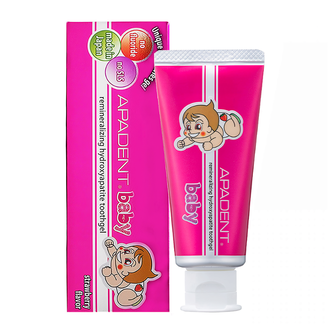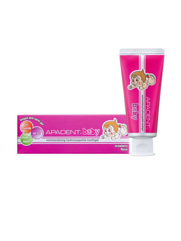 Зубная паста-гель Apadent Baby разработана специально для чистки и укрепления молочных зубов с начала их прорезывания. Паста содержит высокую концентрацию NANO™ (медицинского нано-гидроксиапатита), поскольку эмаль ребенка в 2 раза тоньше и ей необходимо большее количество минералов. Мягкая непенящаяся гелевая структура очищает полость рта без вреда для эмали и десен, а также позволяет контролировать родителям эффективность процесса чистки. Apadent Baby снижает вероятность возникновения кариеса на детских молочных зубах на 47% и поддерживает здоровье всей полости рта. Приятный вкус и аромат клубники понравится вашему малышу и мотивирует его регулярно чистить зубы.