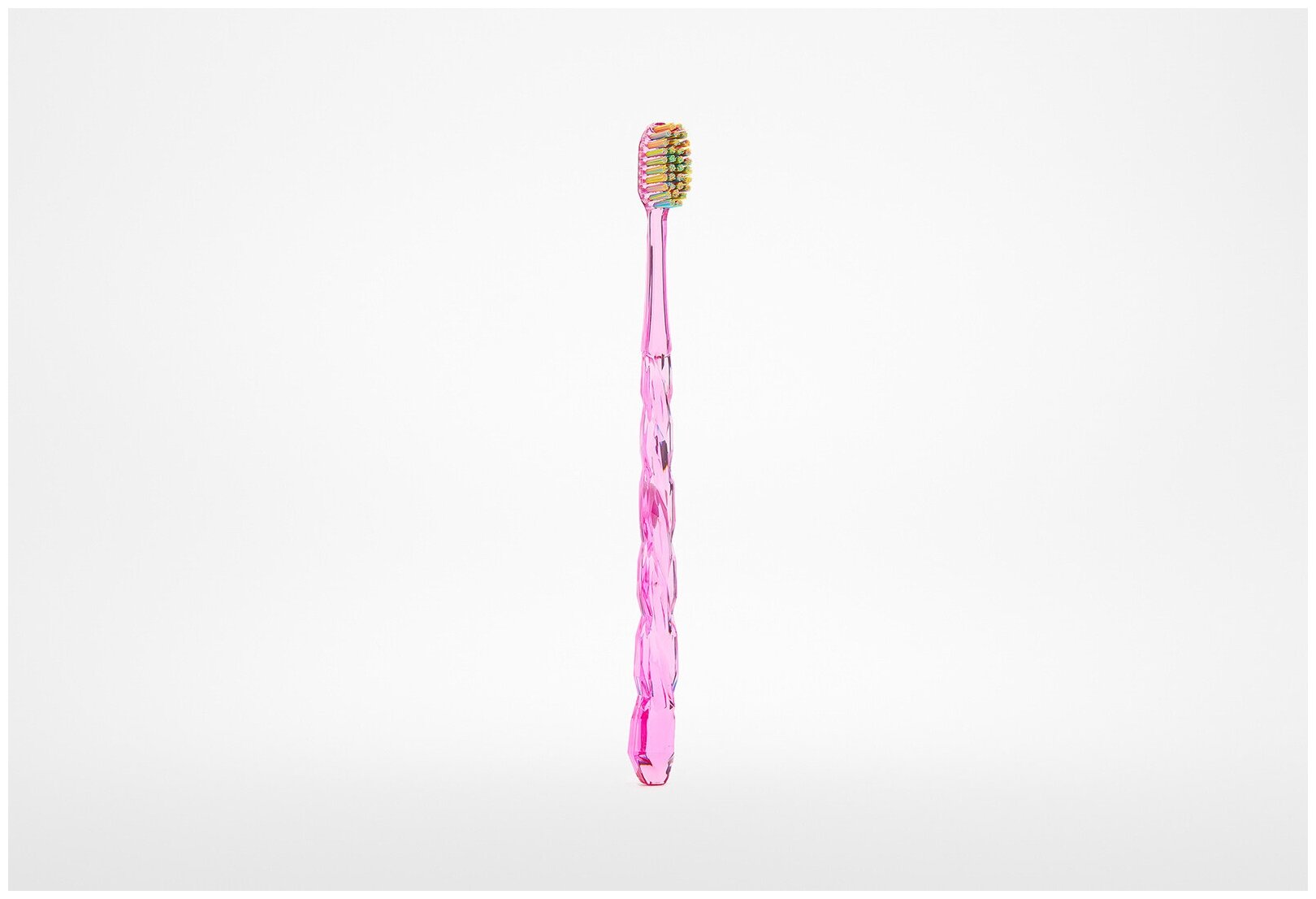 Щетина выполнена из высокотехнологичного материала - полиамида, при использовании которого можно получить гладкую полированную поверхность эмали, устойчивую к повреждениям. Удивительная ручка щетки выполнена из высокопрочного пластика, не царапается и не мутнеет. Каждая деталь ручки в виде кристалла выполнена с тонким вкусом и точностью.