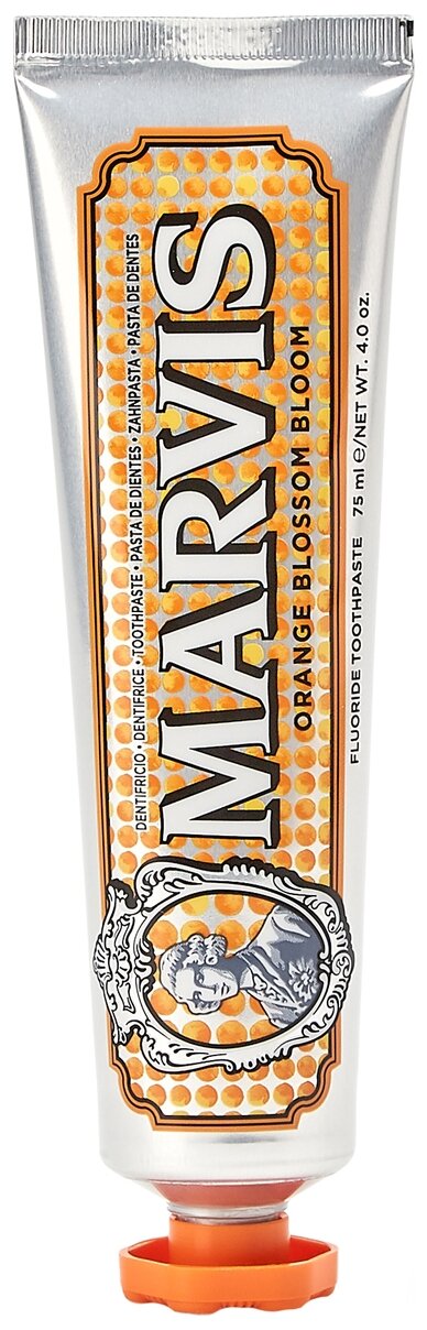 Зубная паста Marvis Orange Blossom Bloom обеспечивает комплексный уход за зубами и деснами. Она не только очищает, но и превращает процесс чистки зубов в приятное и увлекательное действие, благодаря ярким и сочным сочетаниям вкусов. Нотки морозной мяты отлично сочетаются с кислым лимоном и апельсином, придавая пасте вкус теплого лета.