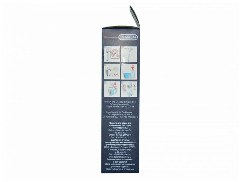 Фильтр для воды для кофемашин De'Longhi. Улучшает качество используемой воды, уменьшая уровень накипи. Улучшает характеристики и эффективность кофемашины, предупреждая неисправности, обусловленные накипью.
