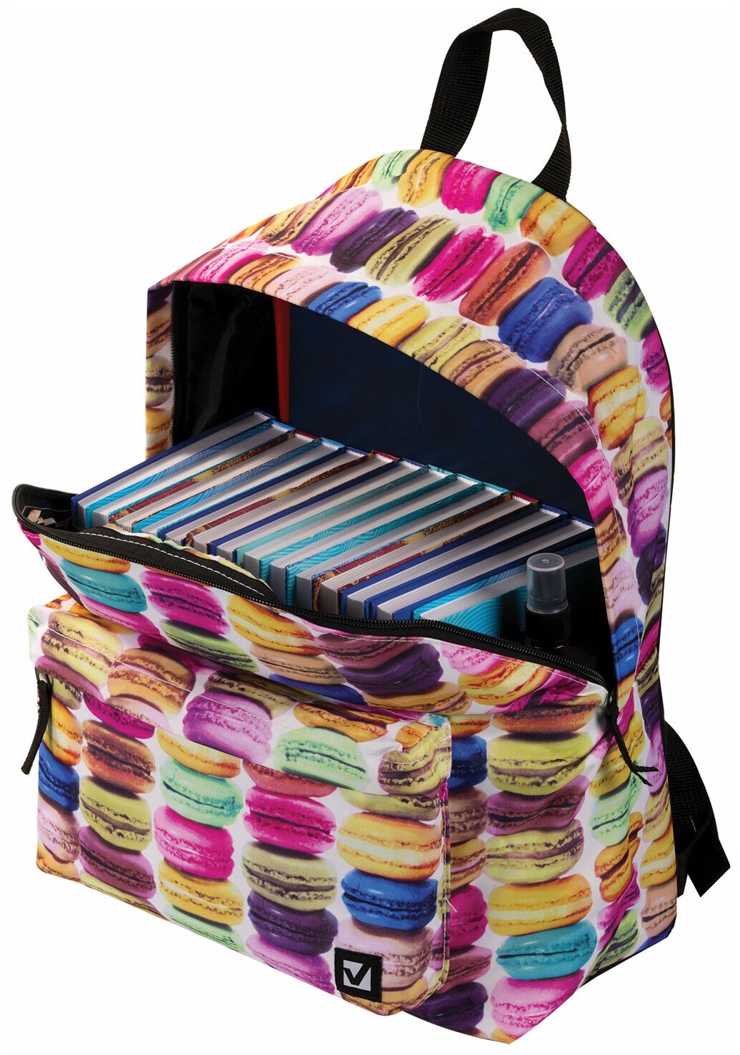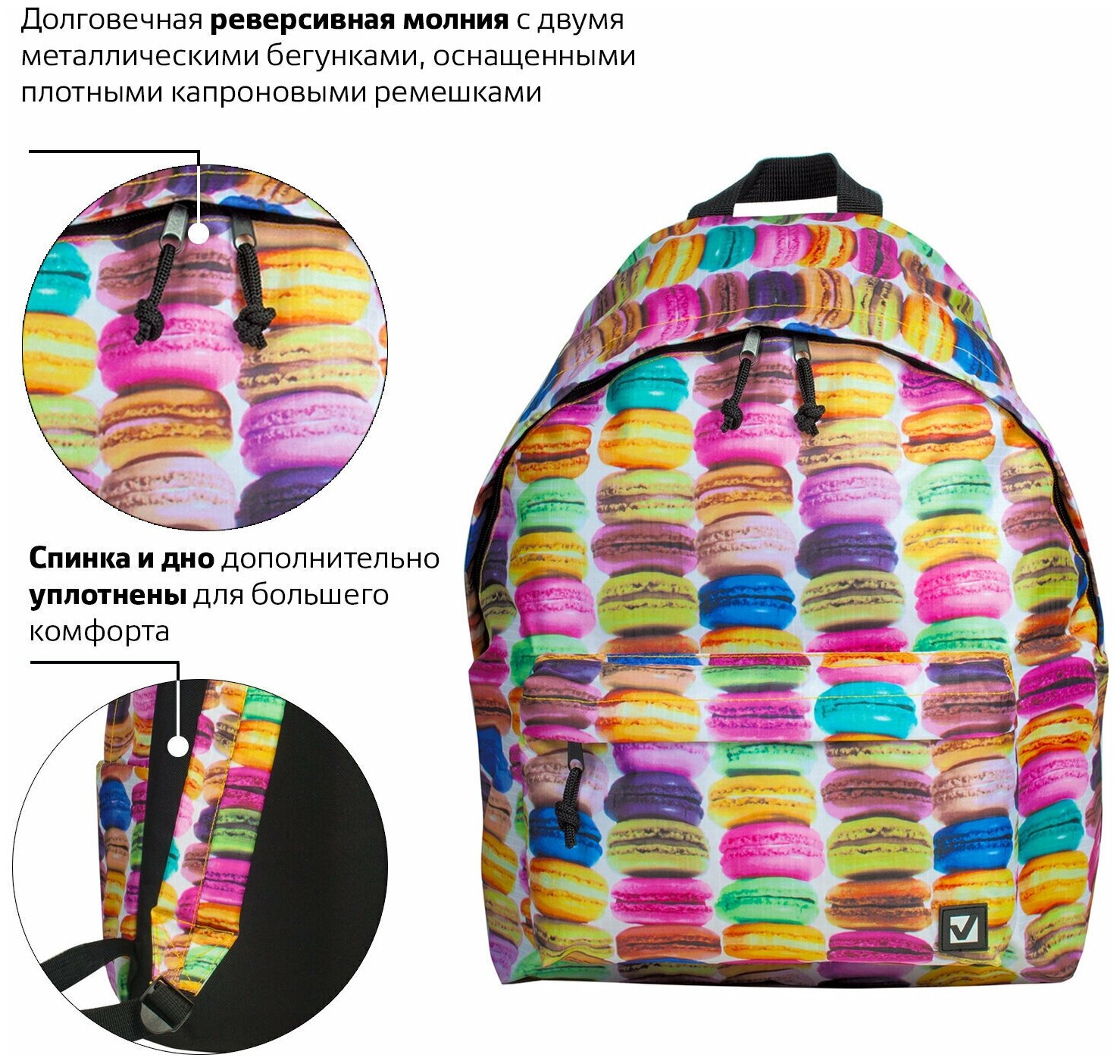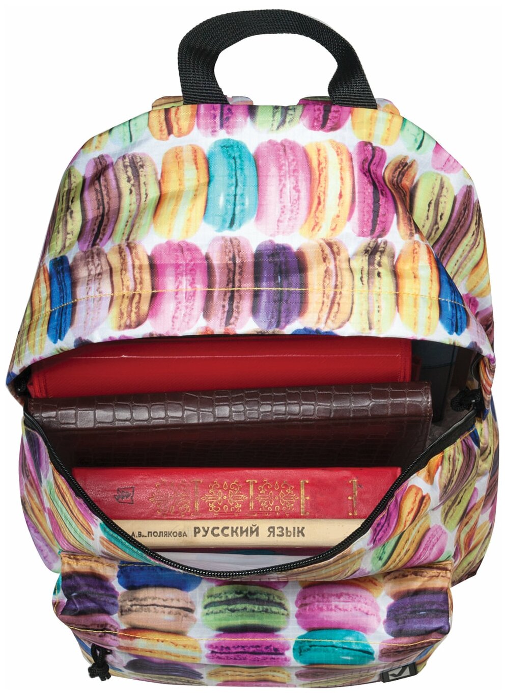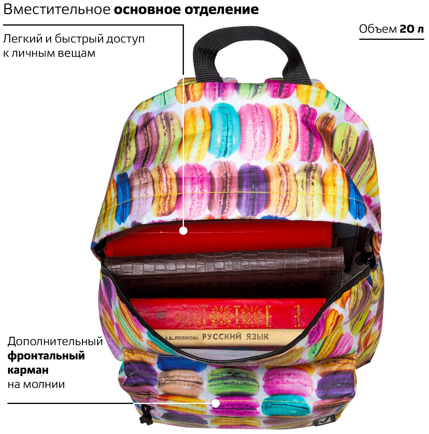Рюкзак Brauberg "Сладости" предназначен для учениц старших классов и студенток. Красочный узнаваемый принт с популярным у молодежи лакомством привлечет внимание современных модниц, а дополнительным плюсом станет вместительность и надежность рюкзака.