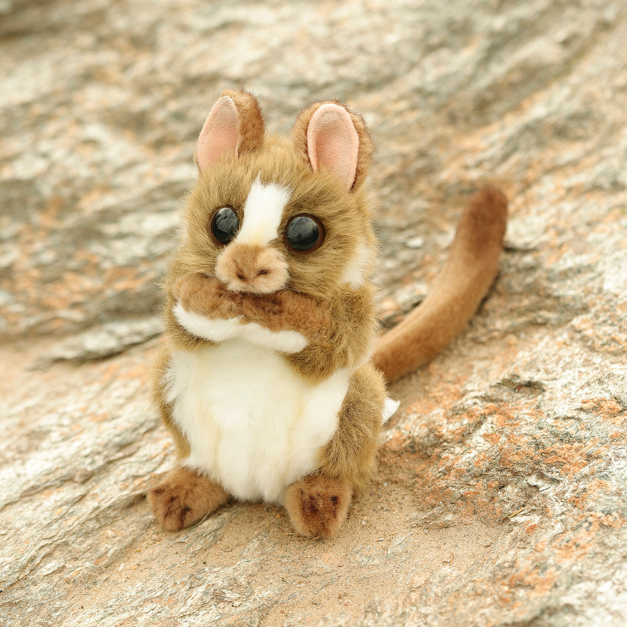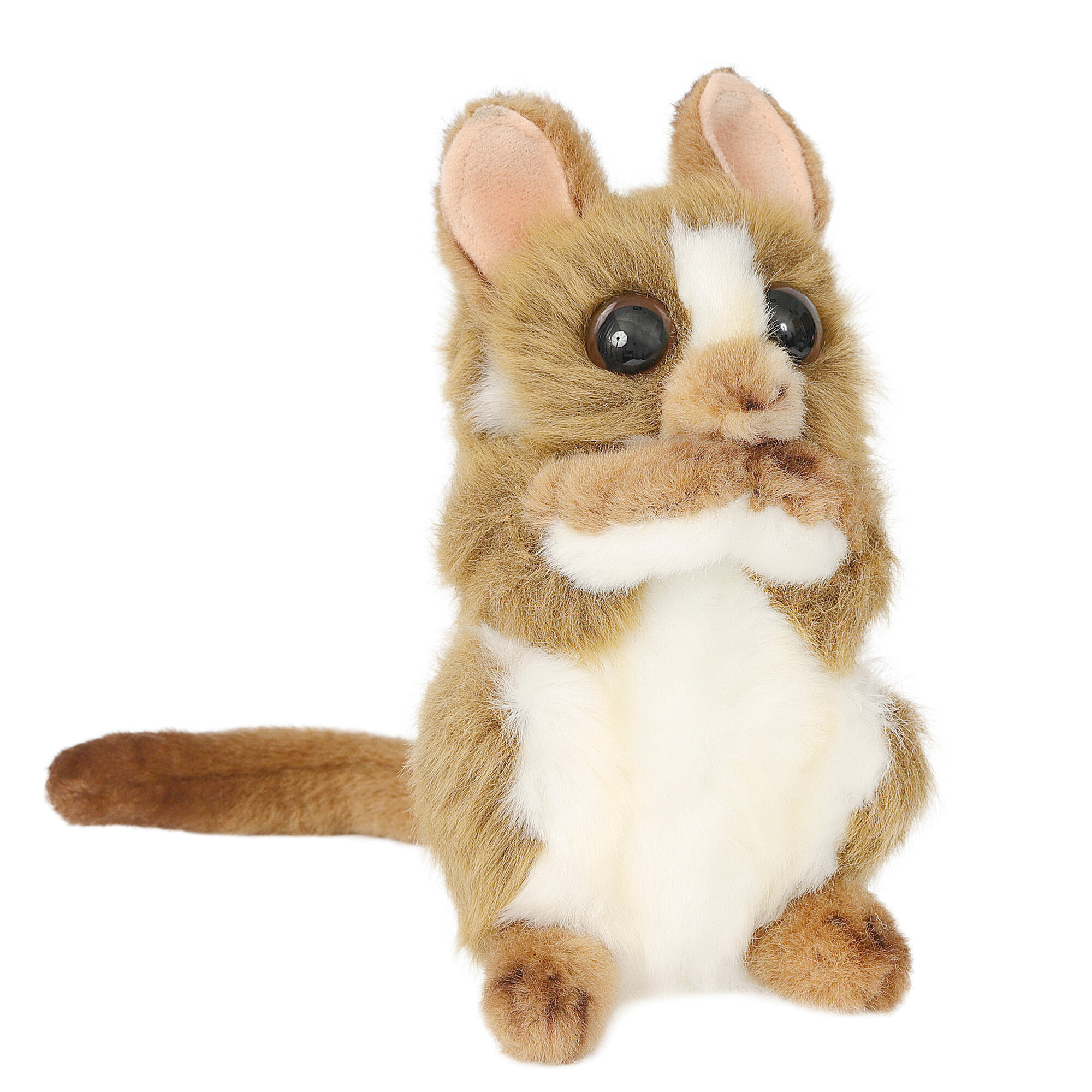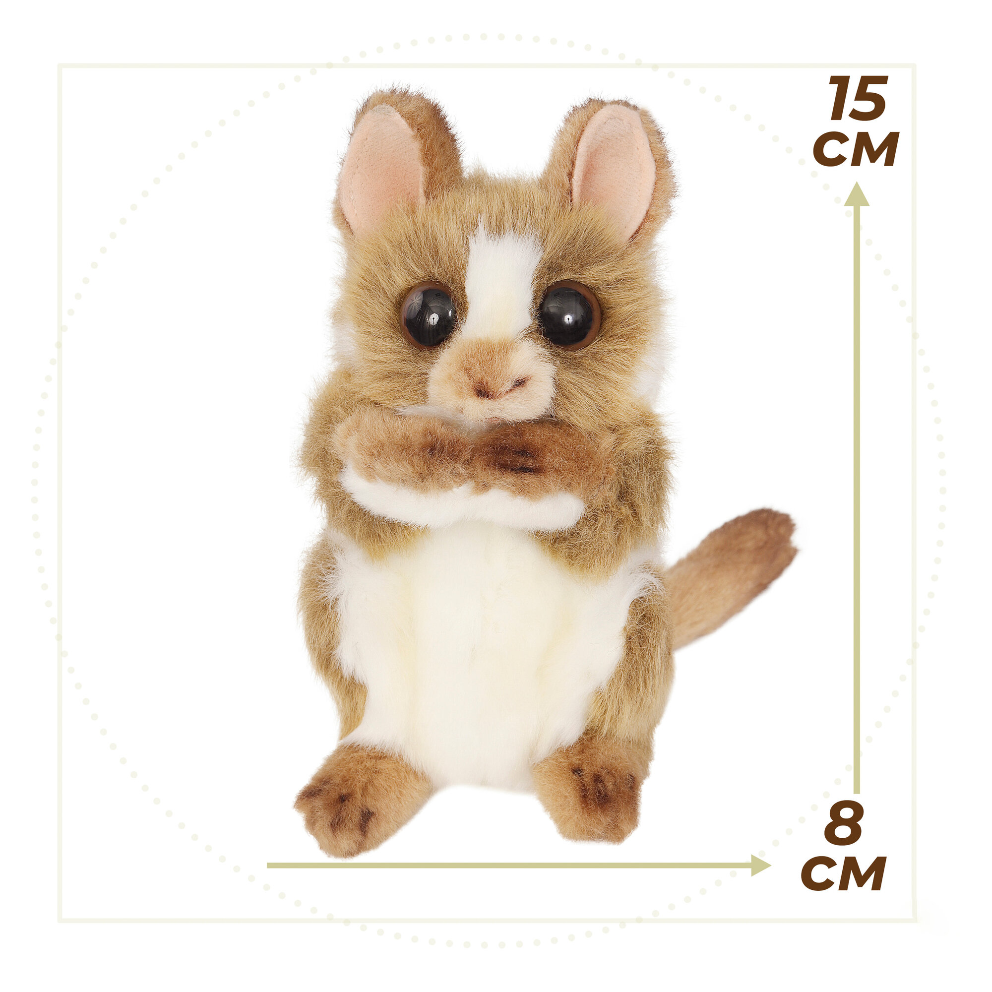 Долгопятов относят к роду приматов, очаровательные зверьки обладают совсем небольшими размерами. Рост взрослой особи составляет от 9 до 16 см. Компания Hansa, которая делает игрушки с высочайшей степенью детализации и старается добиться максимального сходства с настоящим животным, учла это при производстве «мягкого» долгопята, его высота — 15 см. Шерстка игрушки подверглась специальной обработке, поэтому выглядит, словно настоящая.