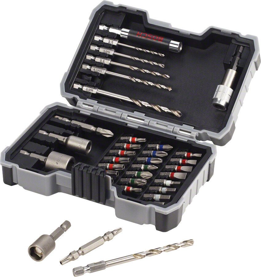 Набор принадлежностей для дрелей, шуруповертов Bosch Mixed PRO 2607017328 - качественный инструмент в количестве 35 штук, который хранится в пластиковом кейсе. Данный набор рекомендуется для закручивания шурупов и сверления металлических изделий.