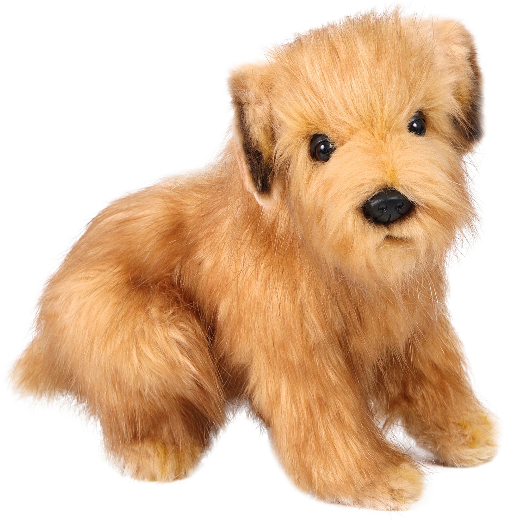 Норфолкский терьер, 23 см. Игрушки Ханса изготовлены из искусственного меха очень приятного на ощупь, внутри имеют титановый каркас. Наличие каркаса позволяет изменять положение лап и туловища, а также поворачивать голову. Игрушки полностью копируют оригинал и могут быть выполнены в натуральную величину. На крупно габаритных игрушках ослик, лошадка и проч., размером от 1м можно сидеть верхом. Благодаря прочному каркасу, они выдерживают вес до 65-70кг.