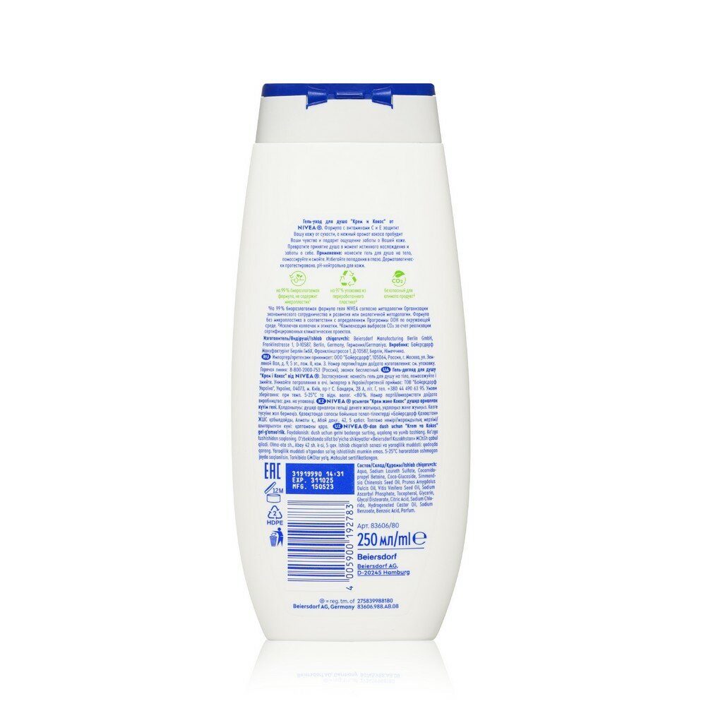 Испытайте истинное удовольствие с крем-гелем для душа Крем Кокос от Nivea. Шелковистый крем-гель с ценным маслом Жожоба окутывает Вас нежной пеной, а восхитительный аромат кокоса пробуждает чувства. Ощутите невероятную мягкость Вашей кожи!