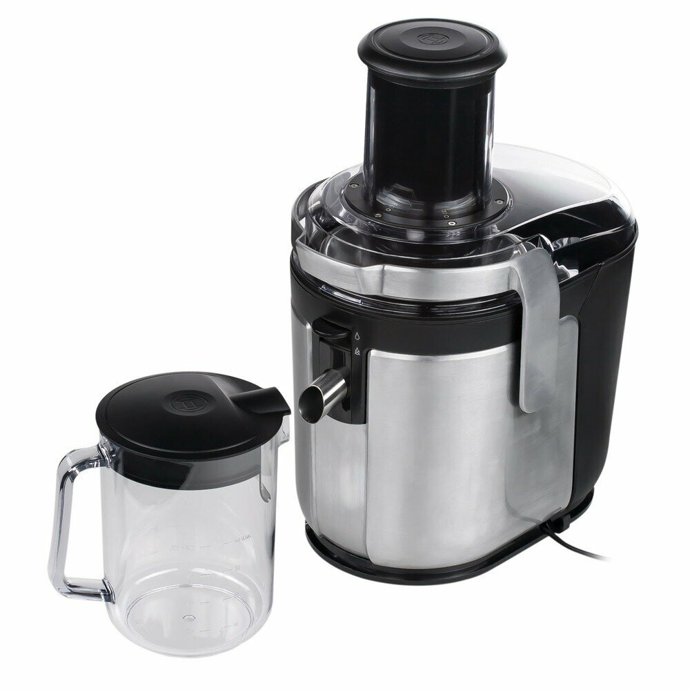 Мощная соковыжималка, эргономичная, алюминиевый корпус, вместительный стакан в комплекте.