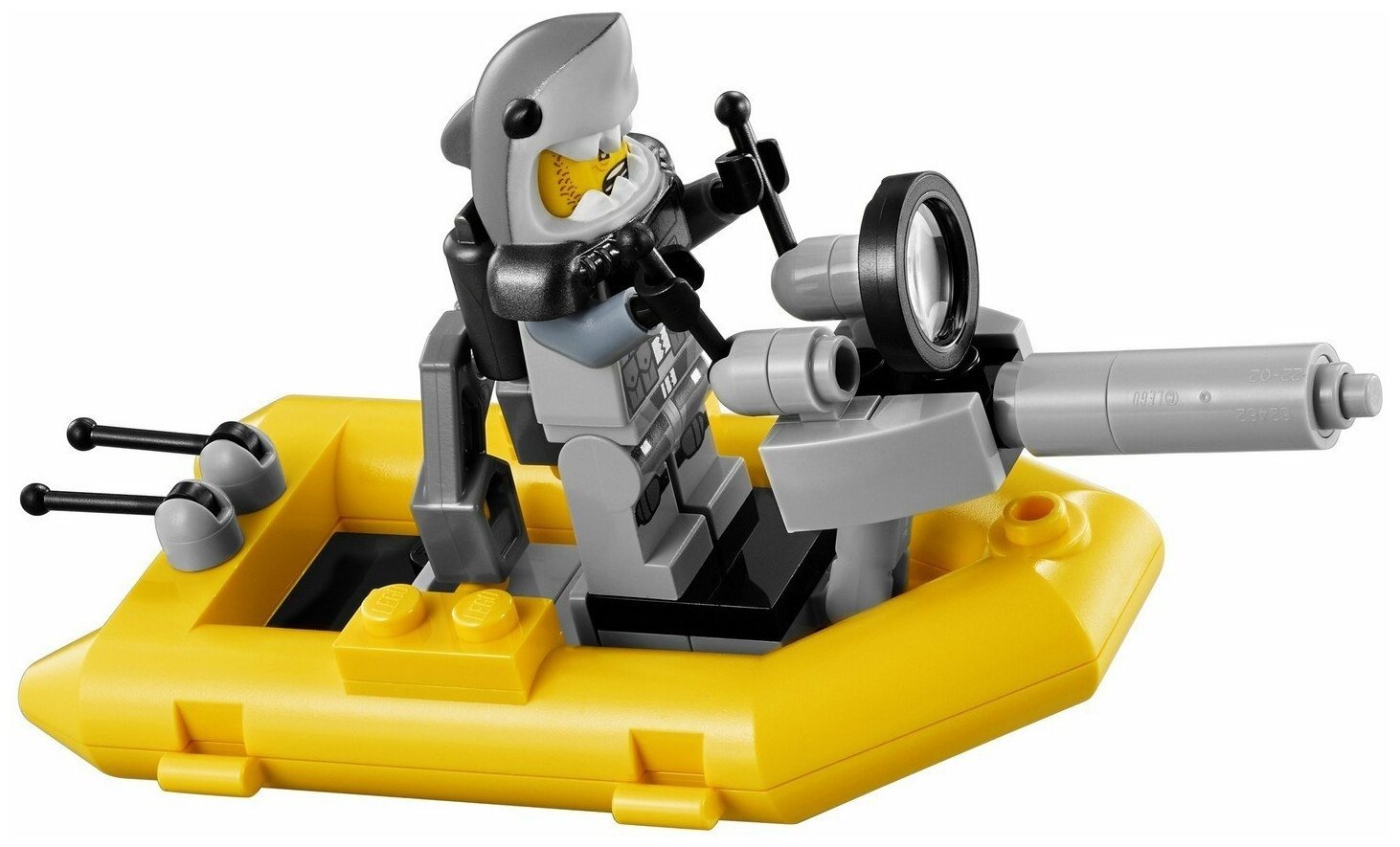 Чрезвычайная ситуация! Солдаты армии акул сбрасывают бомбы на город НИНДЗЯГО Сити с Бомбардировщика Морской дьявол. Бросайся в бой, чтобы спасти Шен-Ли, вместе с героем-ниндзя Коулом. Уклоняйся от выстрелов шутеров бомбардировщика Морской дьявол и наноси ответные удары большим молотом. А когда акулы спустят лодку, будь готов к ещё одному леденящему кровь сражению на воде!