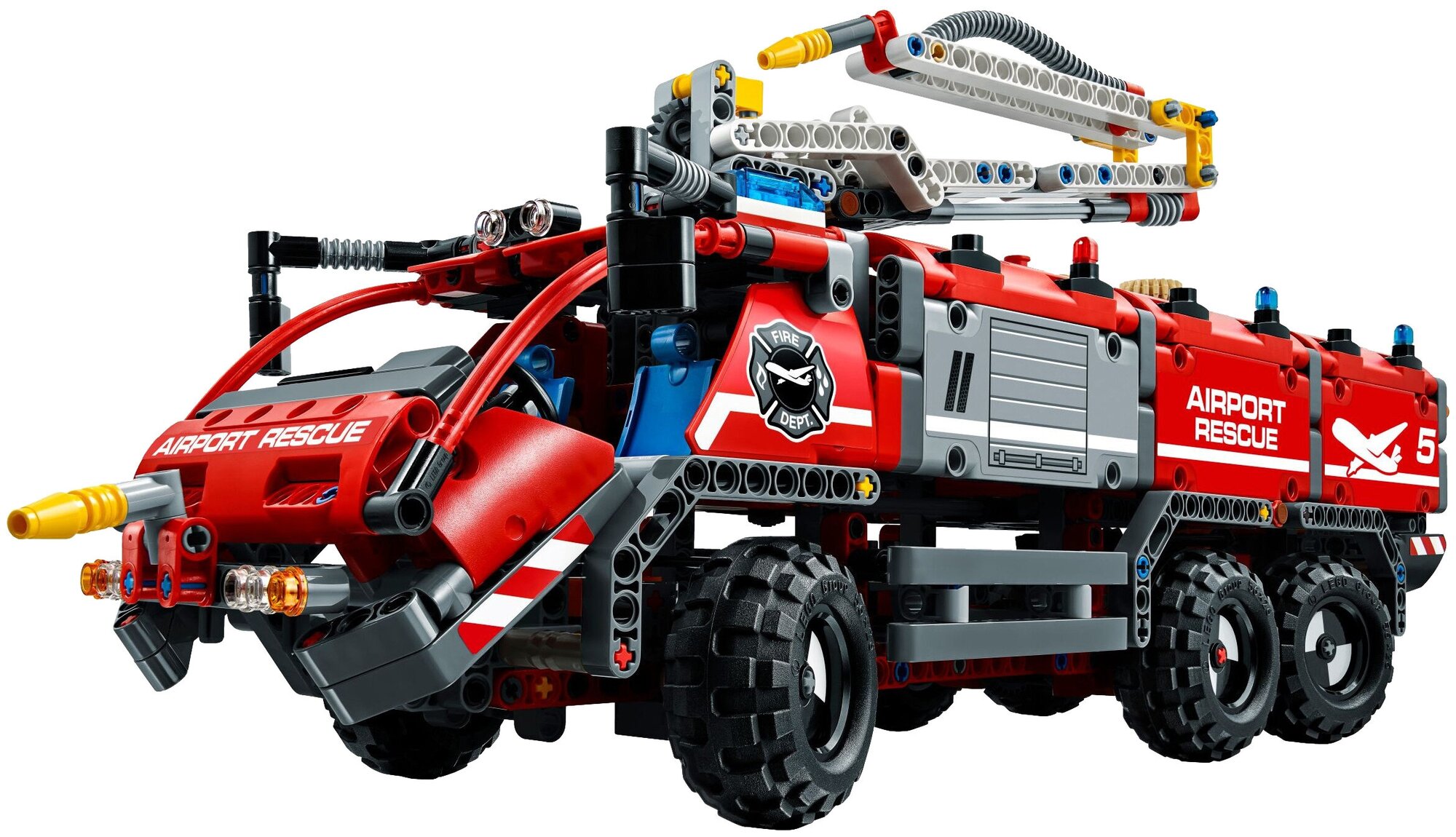 Спеши на помощь на этой потрясающей высокотехнологичной копии 2 в 1 настоящего автомобиля спасательной службы аэропорта. Эта детализированная модель раскрашена в классические красный, черный и серый цвета и включает в себя ряд сложных деталей и функций, в том числе большую водительскую кабину с детализированной приборной панелью, боковые зеркала, открывающийся ящик с инструментами, 4-цилиндровый двигатель с движущимися поршнями, двухосное рулевое управление, сдвоенную заднюю ось и мощные шины. Активируй универсальный механизм стрелы, чтобы разместить водомёт и потушить пламя! Эту модель можно модернизировать с помощью Power Functions и перестроить в замечательный автомобиль пожарной службы!