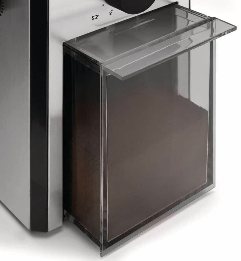 Когда вынимаешь контейнер с молотым кофе, незначительная часть оказывается на столе. Отверстие, из которого перемолотый кофе поступает в контейнер, расположено горизонтально, тем не менее, часть кофе осыпается. Я немного наклоняю кофемолку вперед и слегка постукиваю сбоку, тогда просыпавшегося кофе оказывается намного меньше :)
