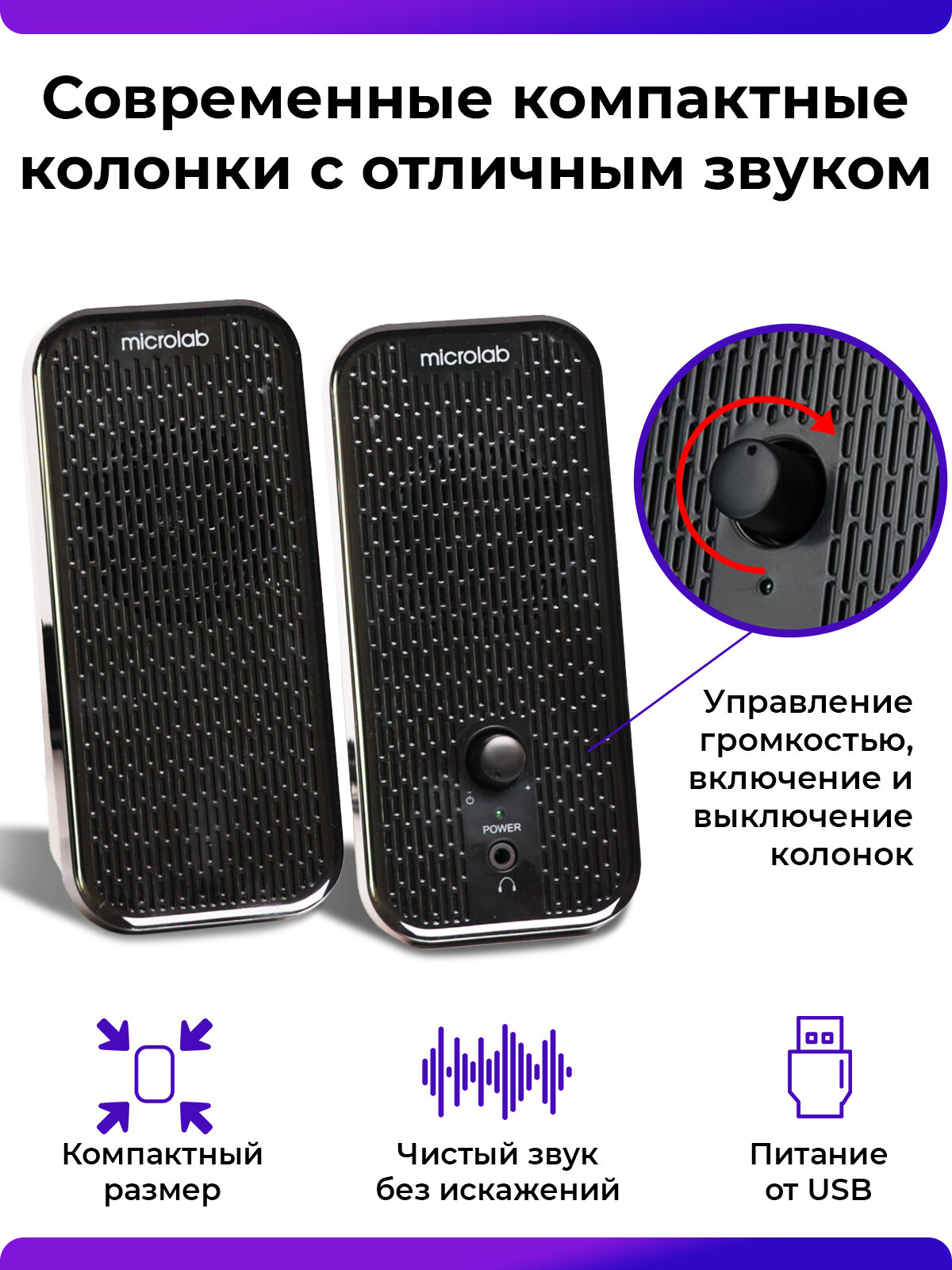 - Хорошее качество звука, отличная громкость, компактные колонки занимают мало места, подключение через USB и поэтому можно использовать как для домашнего ПК так и для ноутбука.