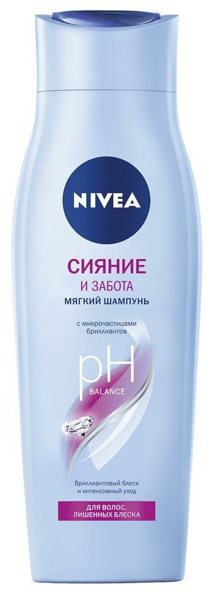Шампунь Nivea для волос, лишенных блеска. СИЯНИЕ И ЗАБОТА, Микрочастицы Бриллиантов, 400 мл