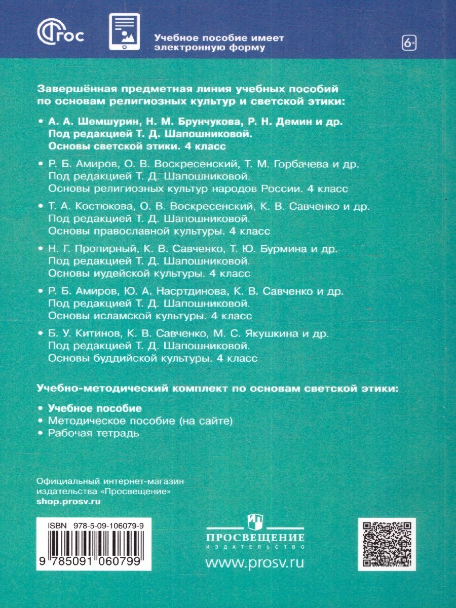 Основы светской этики. 4 класс. Учебное пособие. ФГОС (Шемшурин Алексей Андреевич, Шапошникова Татьяна Дмитриевна, Брунчукова Надежда Михайловна); Просвещение, 2024