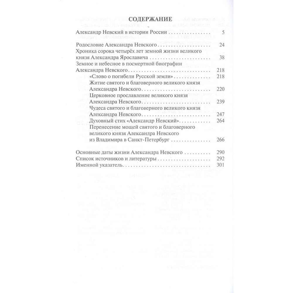 Автор постарался собрать в книге по возможности все свидетельства источников, касающиеся личности князя Александра Ярославича и проводимой им политики, выстроив таким образом подробную хронику сорока четырех лет земной жизни великого князя. Именно подлинные документы эпохи и составили основу повествования. Большое внимание уделено также истории посмертного прославления князя, превратившегося со временем в одного из главных небесных покровителей России.