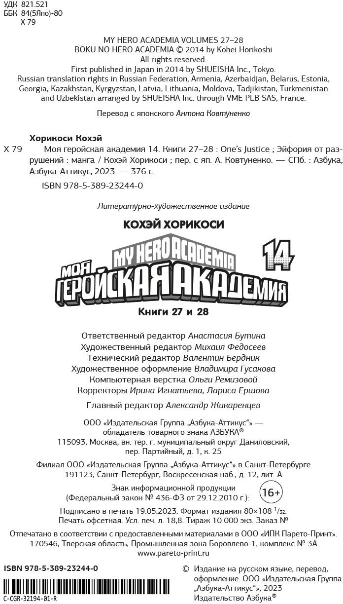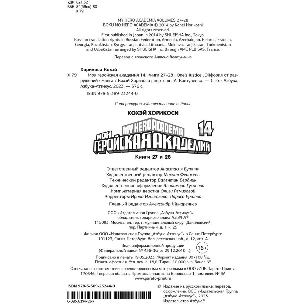 Моя геройская академия. Книга 14. One’s Justice. Эйфория от разрушений (Кохэй Хорикоси); Азбука, 2023