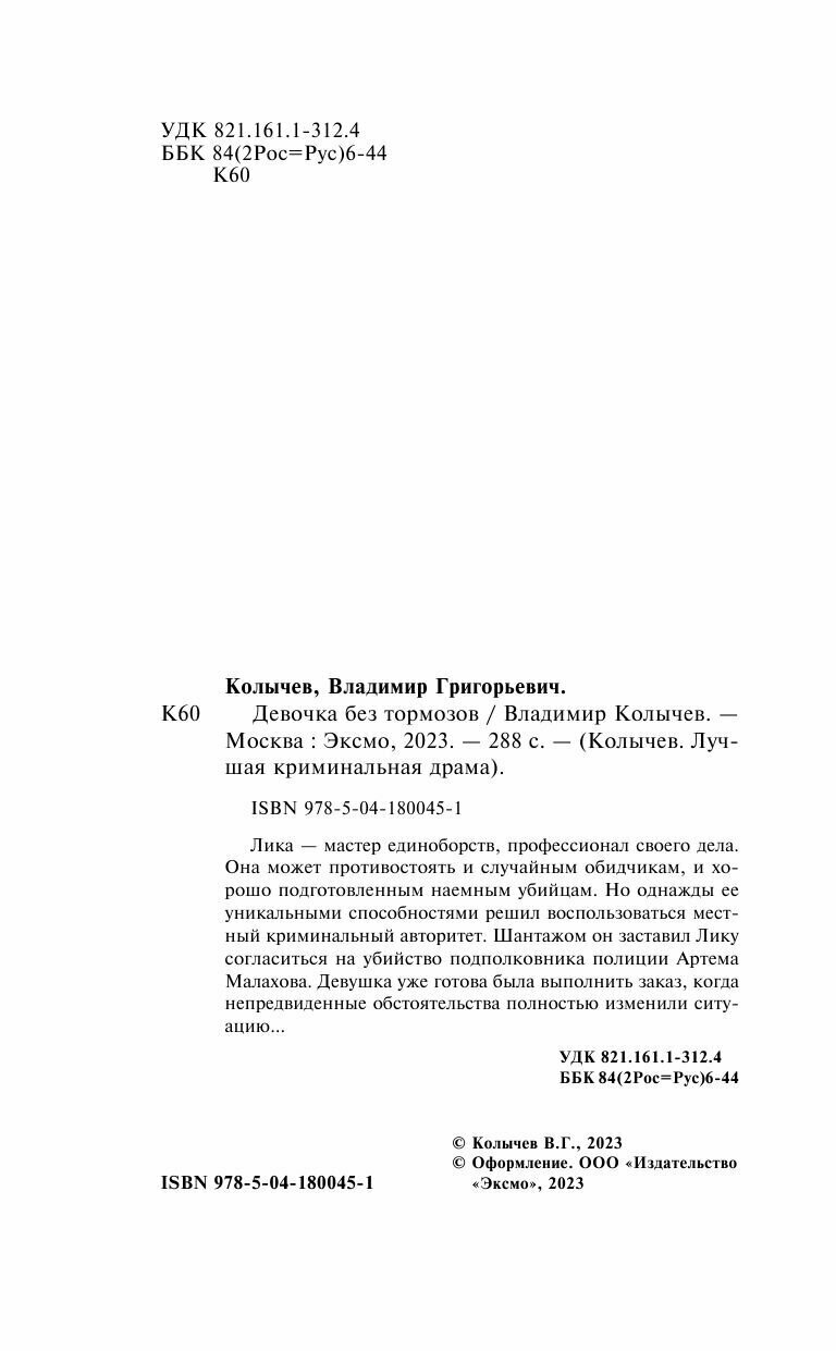 Книга: Девочка без тормозов (Колычев Владимир Григорьевич); ООО "Издательство "Эксмо", 2023