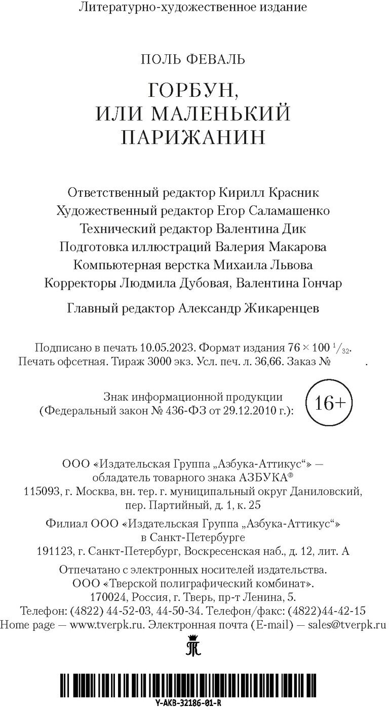 Горбун или Маленький Парижанин (Поль Анри Феваль); Азбука, 2023