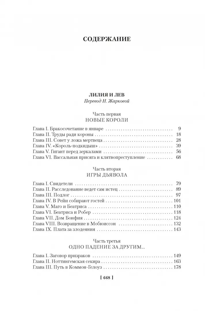Наконец-то вышла последняя книга в серии Большие книги. В ней представлены две заключительные части цикла, из которых можно узнать о том, что произошло у уже знакомых персонажей, кому в итоге достался престол, и кто вообще выжил в войне за него и Францию в целом. Хоть в книге и содержится несколько произведений, из-за чего она получилась довольно таки объёмной, читать удобно, она не сильно тяжёлая, имеет красиво оформленную обложку и белые и плотные листы. Отличный слог автора, интересные события и исторические факты также являются \"плюсами\" данной книги
