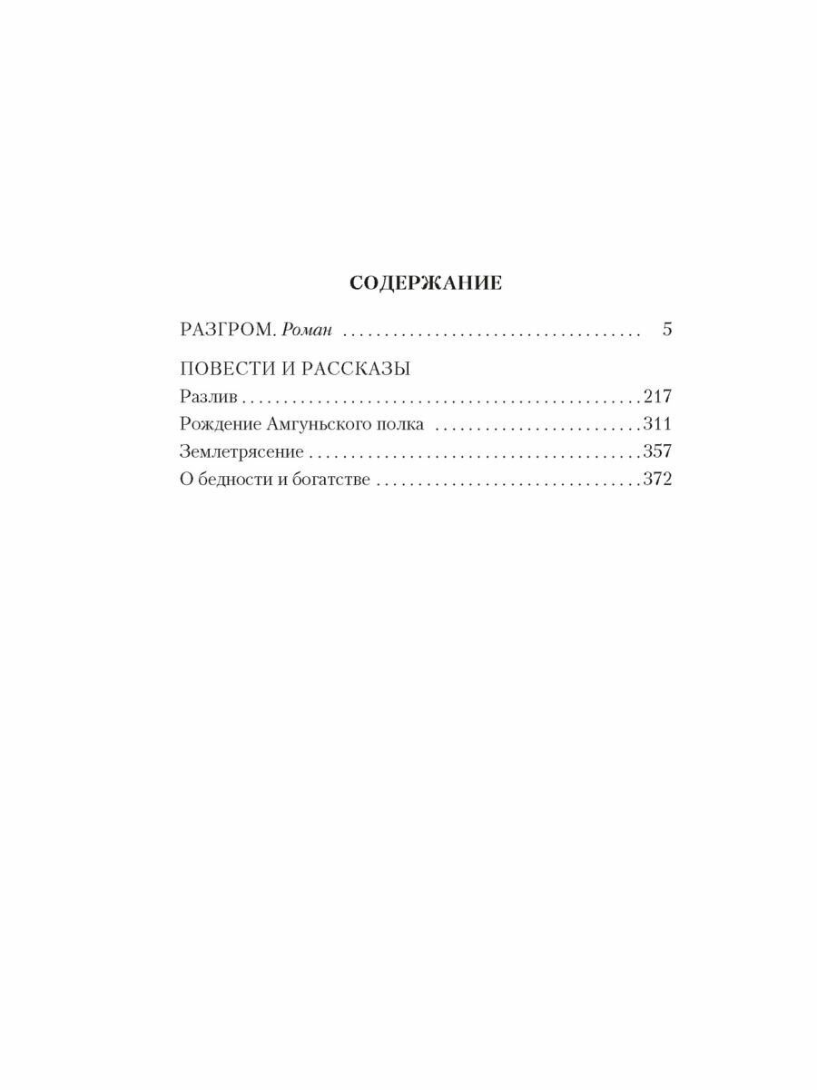 «Разгром» Александра Фадеева — один из самых знаменитых романов, посвященных Гражданской войне. Он написан вскоре после ее окончания и во многом автобиографичен: в 1919–1921 годах будущий писатель, а в то время красный комиссар, участвовал в боевых действиях на Дальнем Востоке. Это история поражения и гибели партизанского отряда, рассказанная ярко и правдиво. Воспринятый поначалу неоднозначно, позднее роман был включен в школьную программу и выдержал сотни переизданий. В советское время «Разгром» трактовался как произведение о нравственной победе коммунистической идеи. Однако роман о Гражданской войне, показанной во всех ее глубинных противоречиях и драматизме, сумел пережить свое время и остаться общепризнанной классикой отечественной литературы. В издание также вошли повести и рассказы А. Фадеева «Разлив», «Рождение Амгуньского полка», «Землетрясение» и «О бедности и богатстве».
