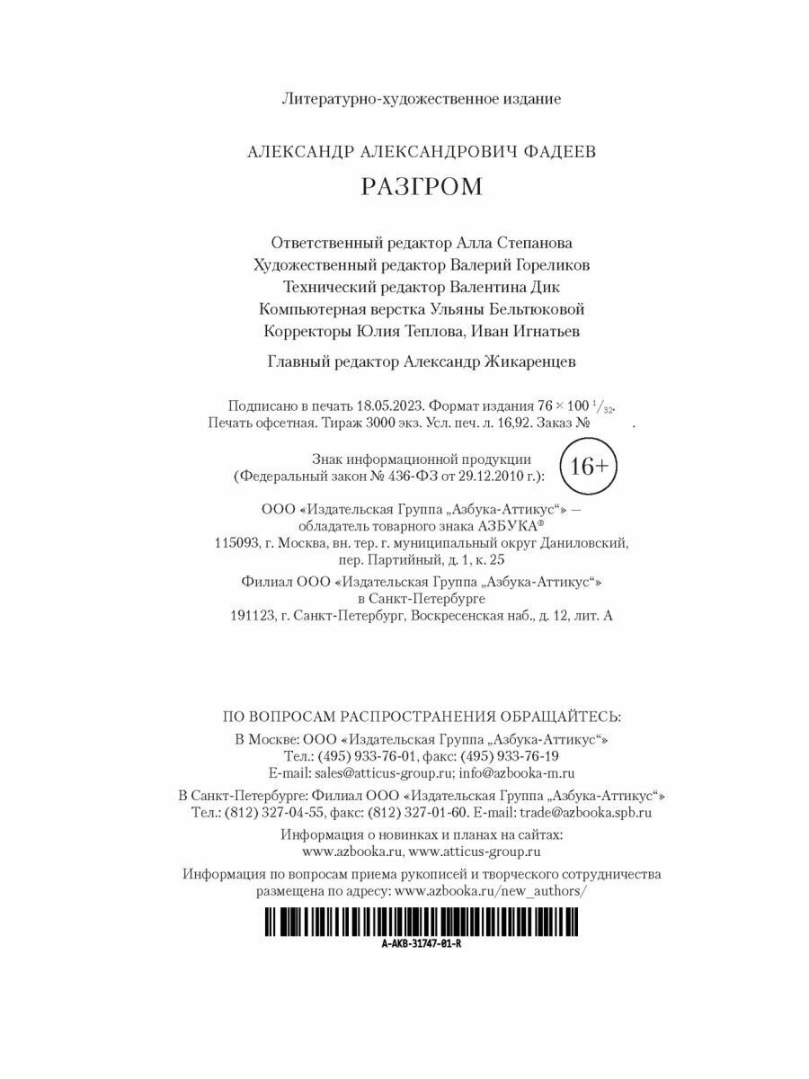 Книга: Разгром (Фадеев Александр Александрович); Азбука, 2023