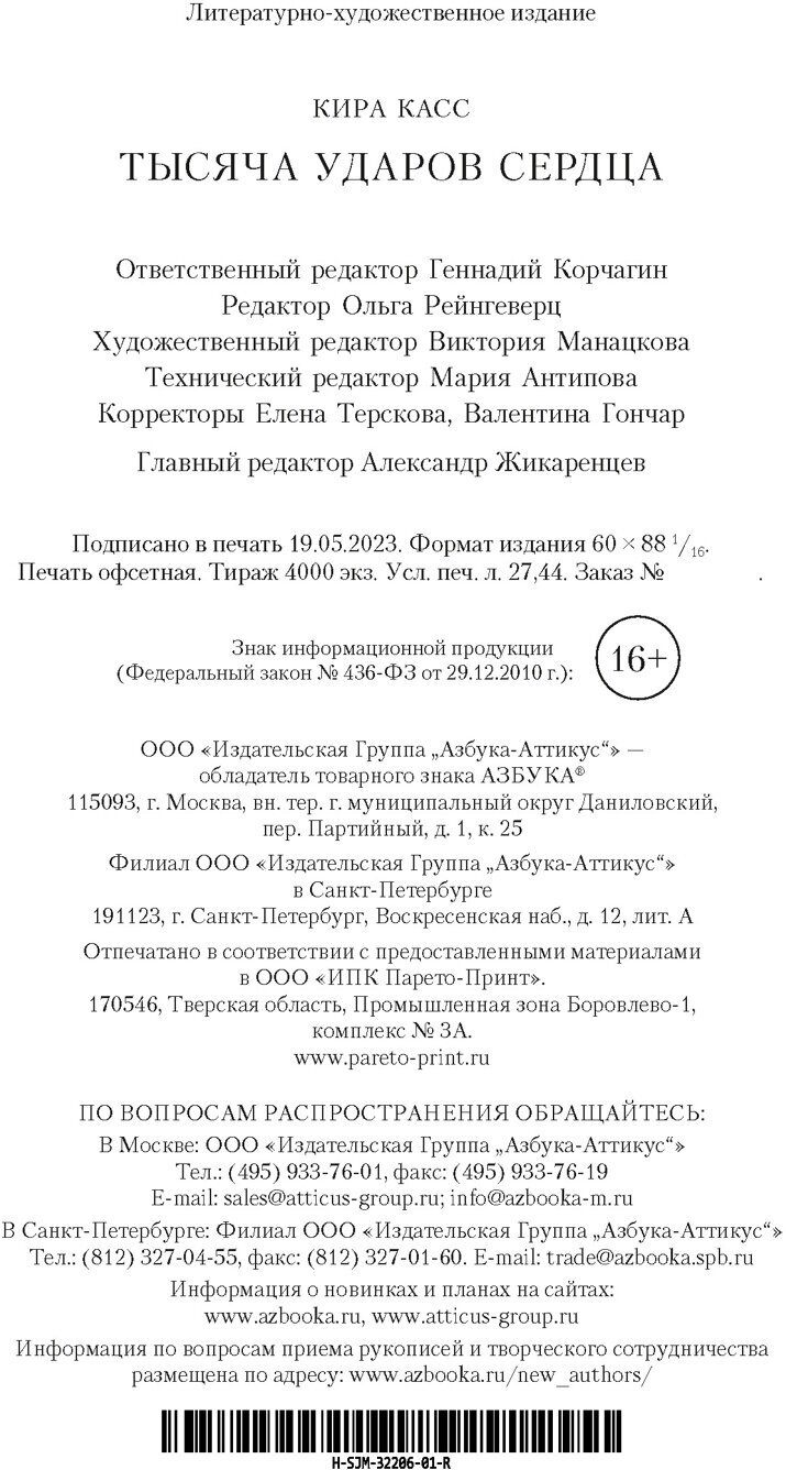 Книга: Тысяча ударов сердца (Кира Касс); Азбука, 2023