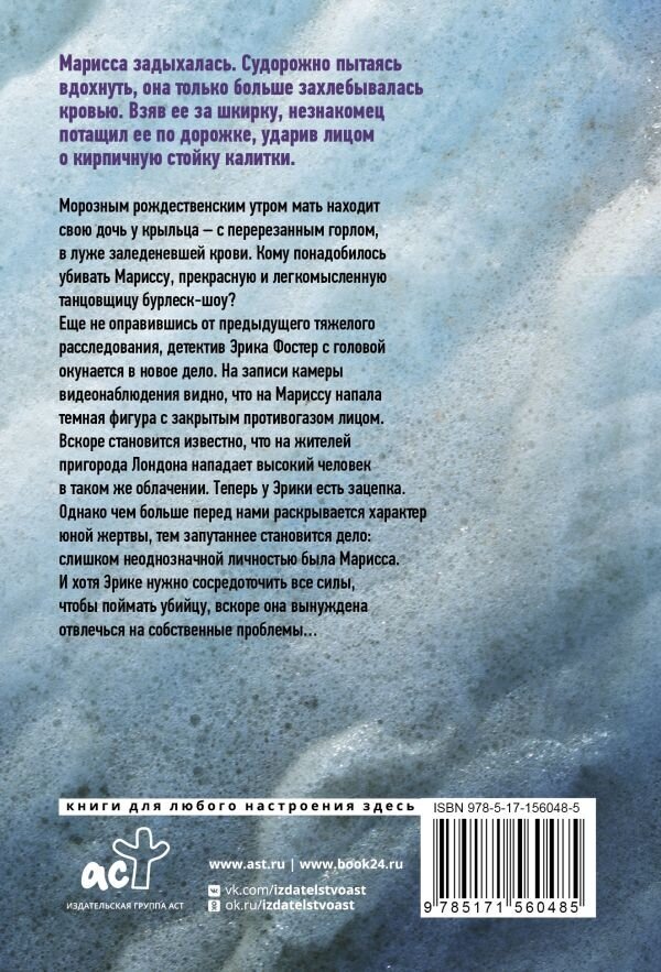Запутанный детектив в лучших традициях жанра! Новая книга о расследованиях детектива Эрики Фостер. Каждую книгу можно читать как самостоятельное расследование. Произошло жестокое преступление, свидетели дают очень противоречивые и путанные показания. Расследование идет тяжело, а убийства начинают множиться. Следователям предстоит перевернуть кучу запутанной информации, разгадать множество тайн прошлого. Неоднозначные герои, поломанные судьбы и жуткие преступления. Рекомендую познакомиться и с другими расследованиями сложившейся команды полицейских!