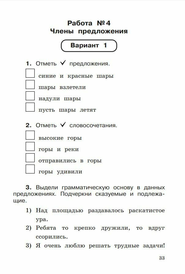 Каждая работа представлена в двух вариантах и состоит из 10 заданий, позволяющих выявить как базовые практические знания и умения учащихся в рамках конкретной темы, так и оценить сформированные способы действий с языковым материалом и способность детей применять их. С учетом полученных результатов педагог может выстроить коррекционную работу как со всем классом, так и индивидуально с конкретными учениками.