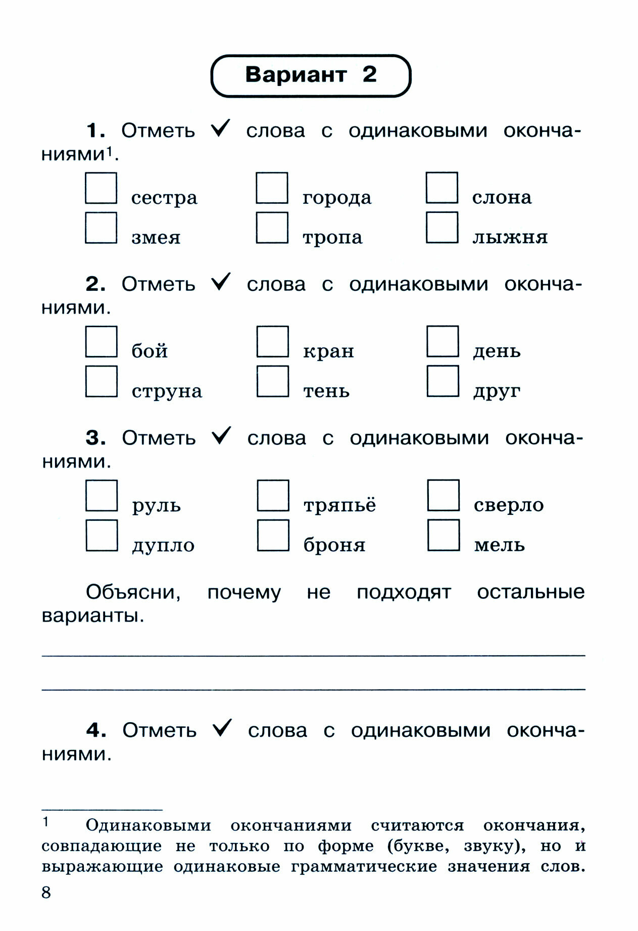 Тетрадь предназначена для организации итогового контроля уровня усвоения четырех тем курса русского языка 4 класса: проверка орфограмм в падежных окончаниях;