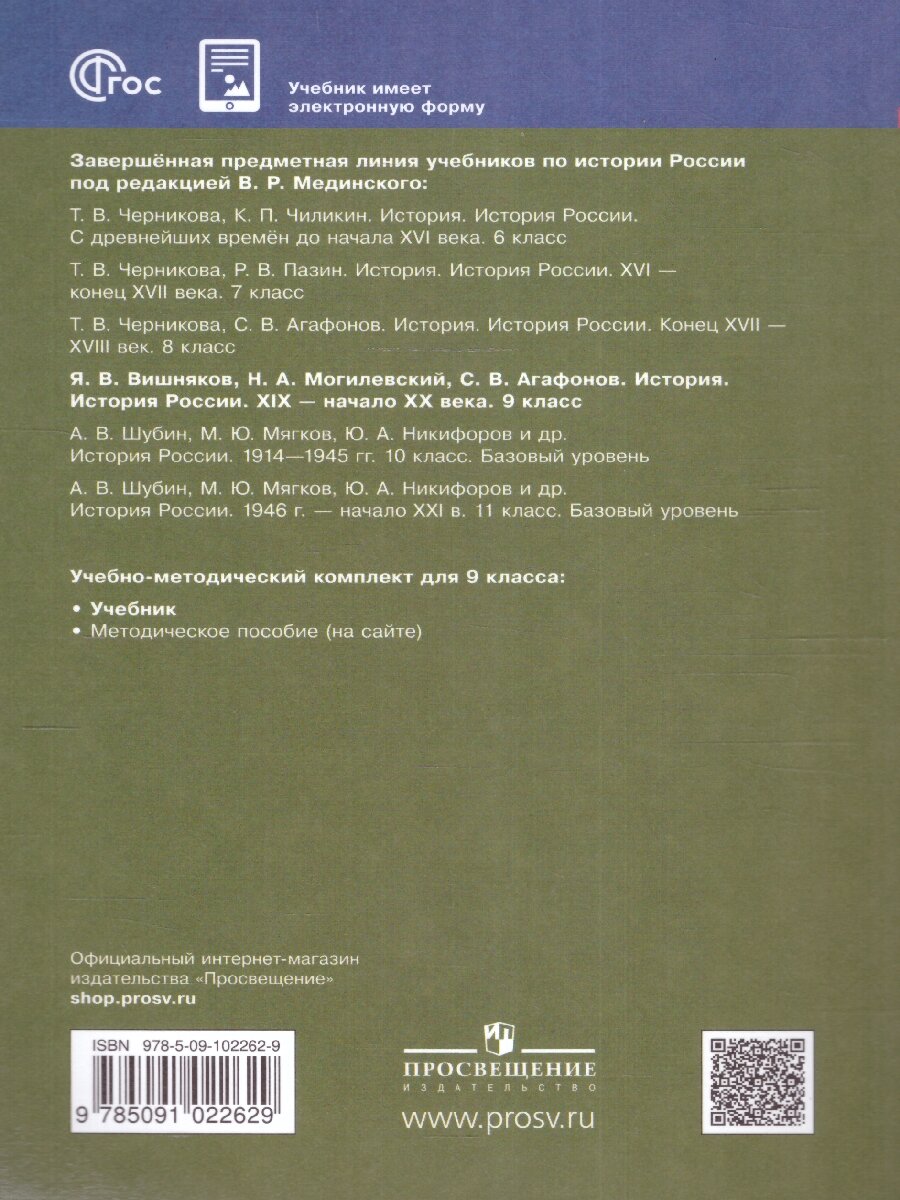 История. История России. XIX - начало XX века. 9 класс. Учебник (Вишняков Ярослав Валерианович, Агафонов Сергей Валерьевич, Могилевский Николай Алексеевич); Просвещение, 2024