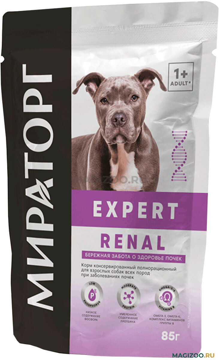 Влажный корм для собак Мираторг Expert Renal Бережная забота о здоровье почек 85г СК Короча