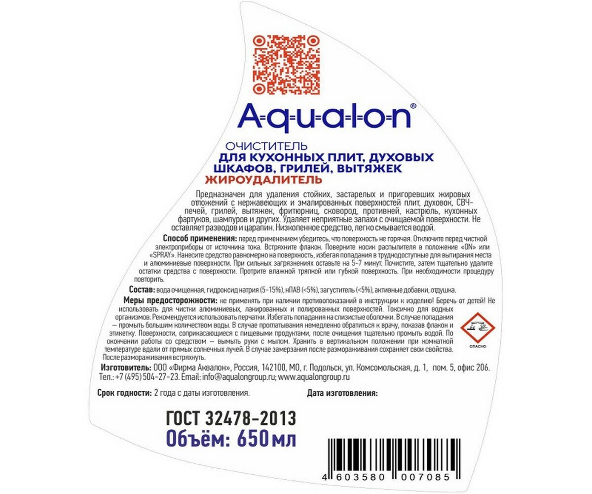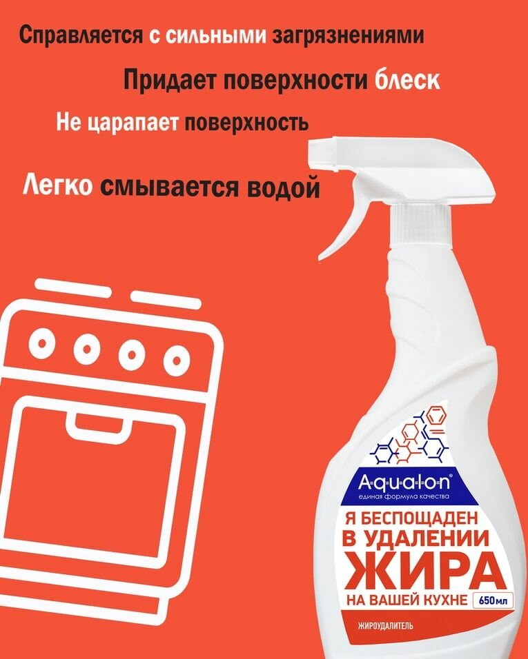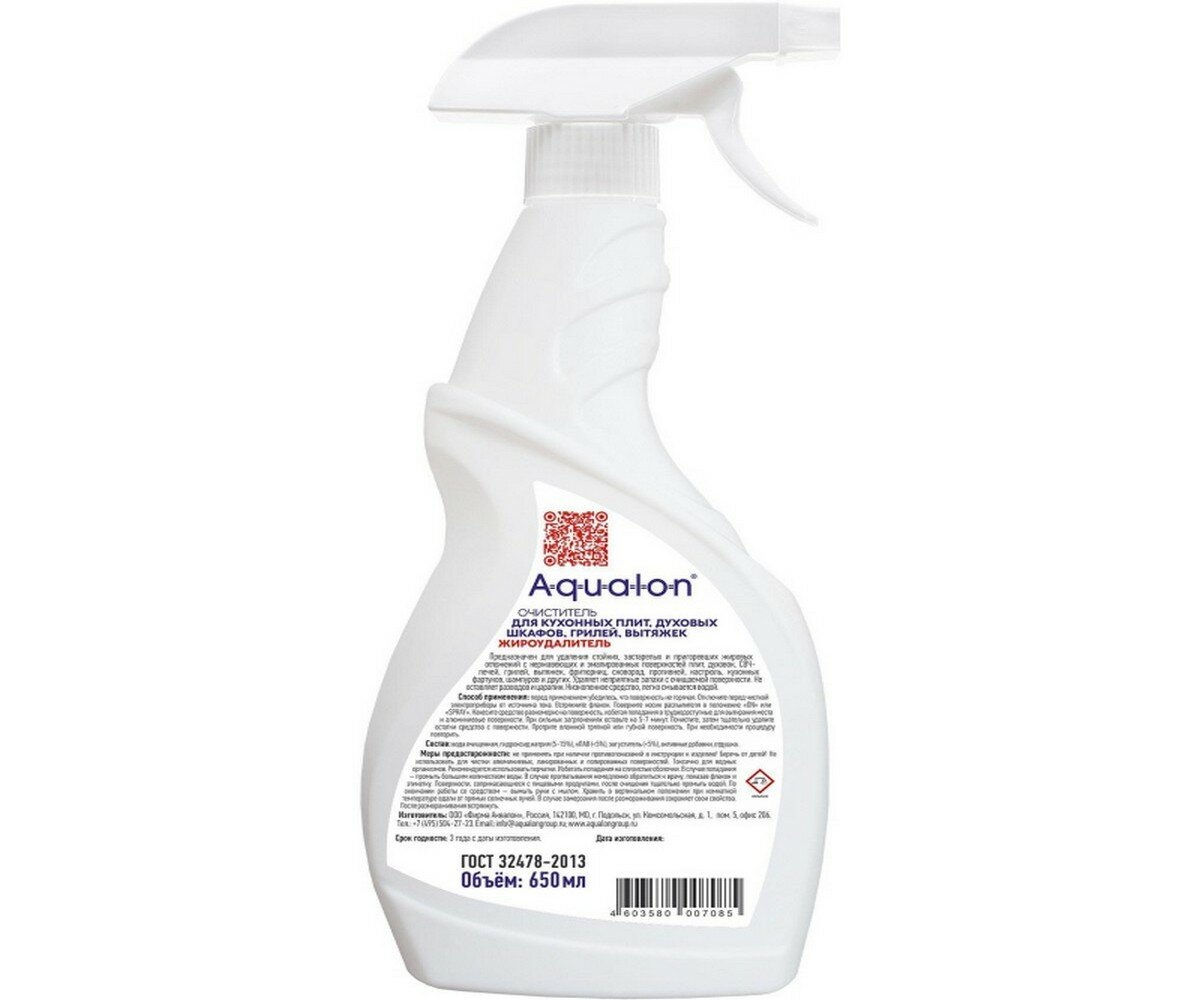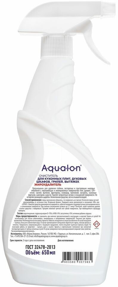 Средство чистящее Aqualon Жироудалитель Очиститель для кухонных плит духовых шкафов грилей вытяжек 650мл Аквалон