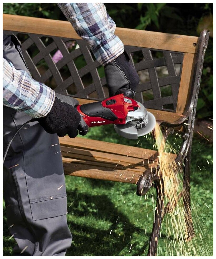 Мощная угловая шлифмашина Einhell предназначена для длительной беспрерывной работы. Этот инструмент шлифует и режет металл, пластик, дерево и даже такие твердые поверхности как камень, кирпич или бетон. В устройстве предусмотрена кнопка блокировки вращения шпинделя, которая позволяет обезопасить оператора и при необходимости поменять шлифовочный диск. Инструмент оборудован защитным кожухом, который отводит от оператора пыль и возможные искры.