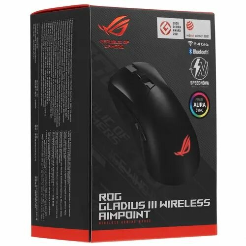 Мышь беспроводная ASUS ROG Gladius III Wireless AimPoint, 36000dpi, Bluetooth/ Wireless USB, RGB, 370mAh, Черный 90MP02Y0-BMUA00